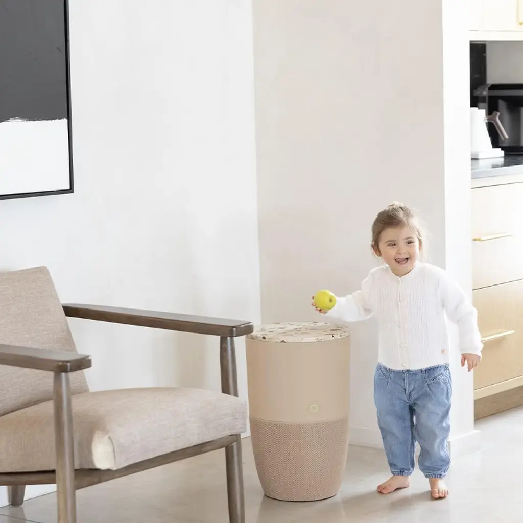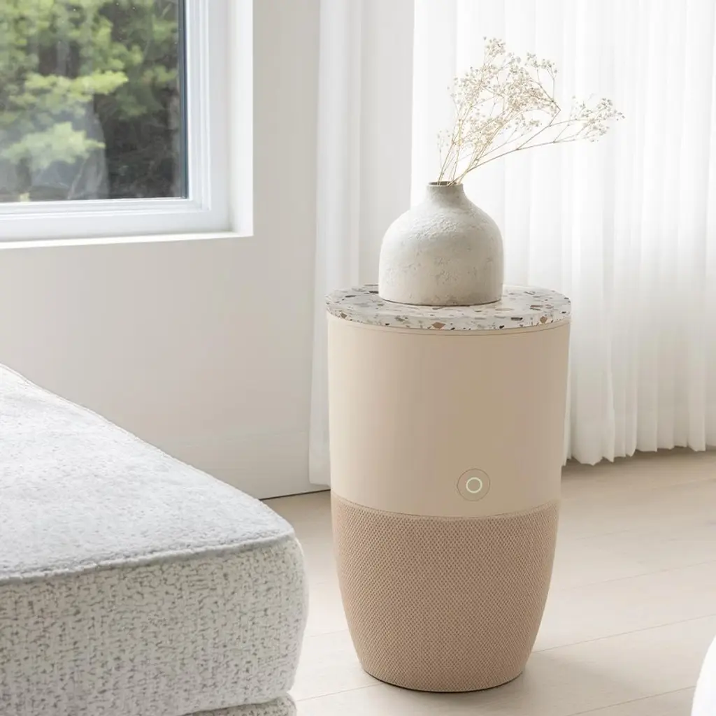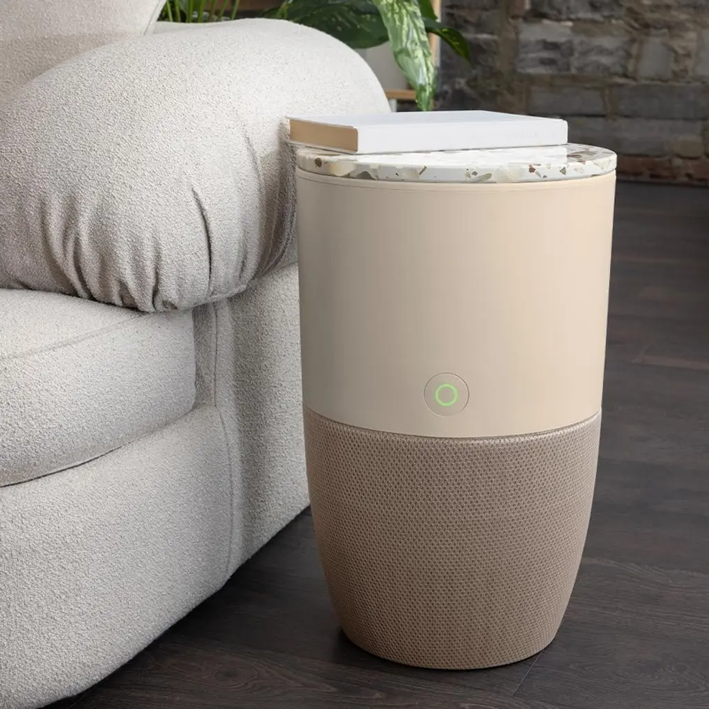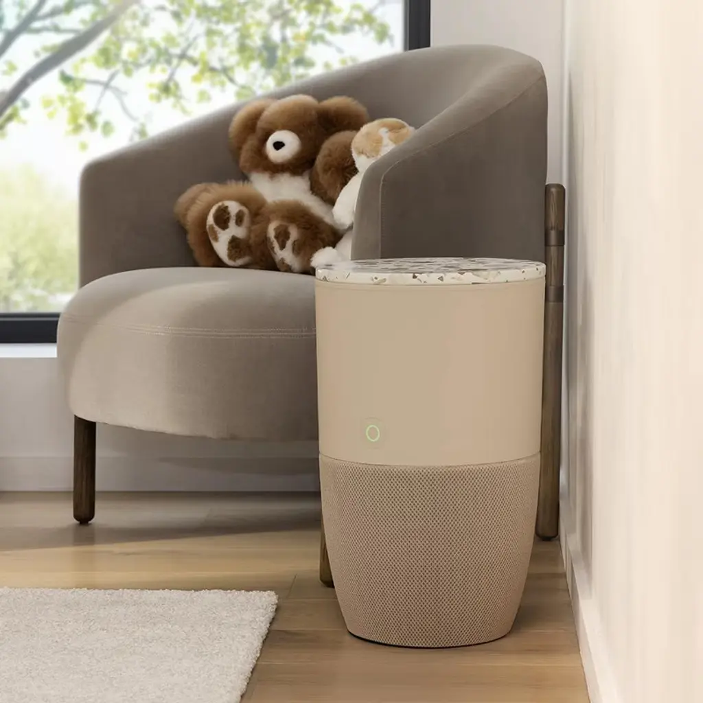 A smart medical-grade air purifier that beautifies your space. A Terrazzo table top add-on, transforms Bloom™ into a stylish accent table with storage - a perfect addition to any decor. Table top can be lifted to access a convenient storage compartment, perfect for storing a TV remote, reading glasses, snacks, small toys and more. Featuring 3-stage HEPA-13 air filtration technology with activated carbon, Bloom™ removes air pollutants and stubborn odors like: dust, smoke, bacteria, viruses, airborne particles from wildfires, VOCs, pollen, pet dander, allergens, mold, odors and more. When set to AutoDetect™, the PM2.5 infrared sensor provides intelligent air quality monitoring and adjusts the fan speed accordingly to provide a worry-free experience.