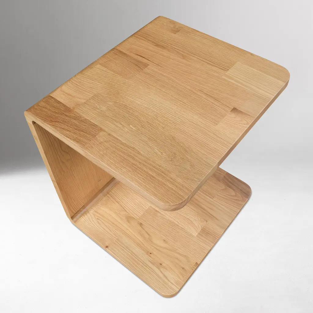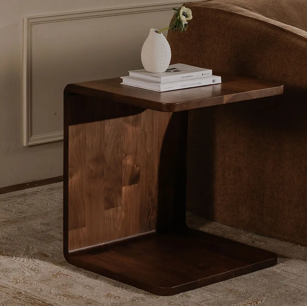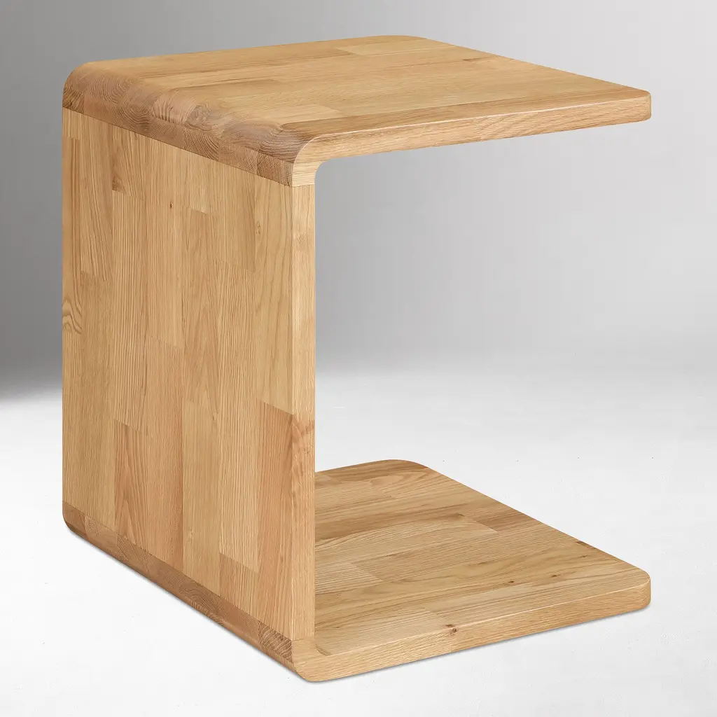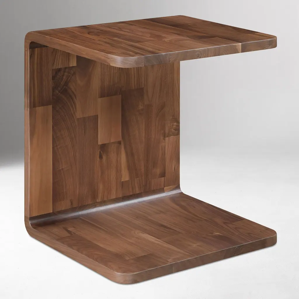 Sculptural C-shape tucks neatly under sofas or chairs. Crafted from solid wood for lasting quality. Compact footprint, big on function. A modern accent that moves with you.