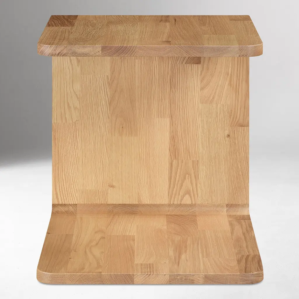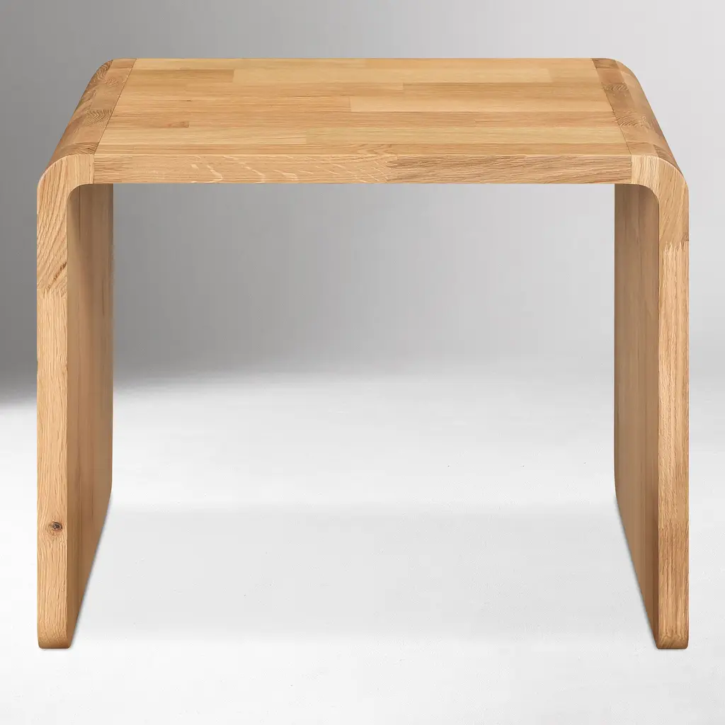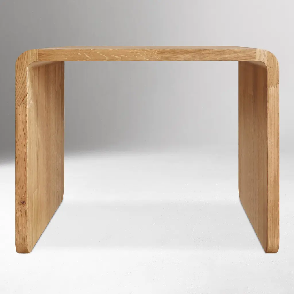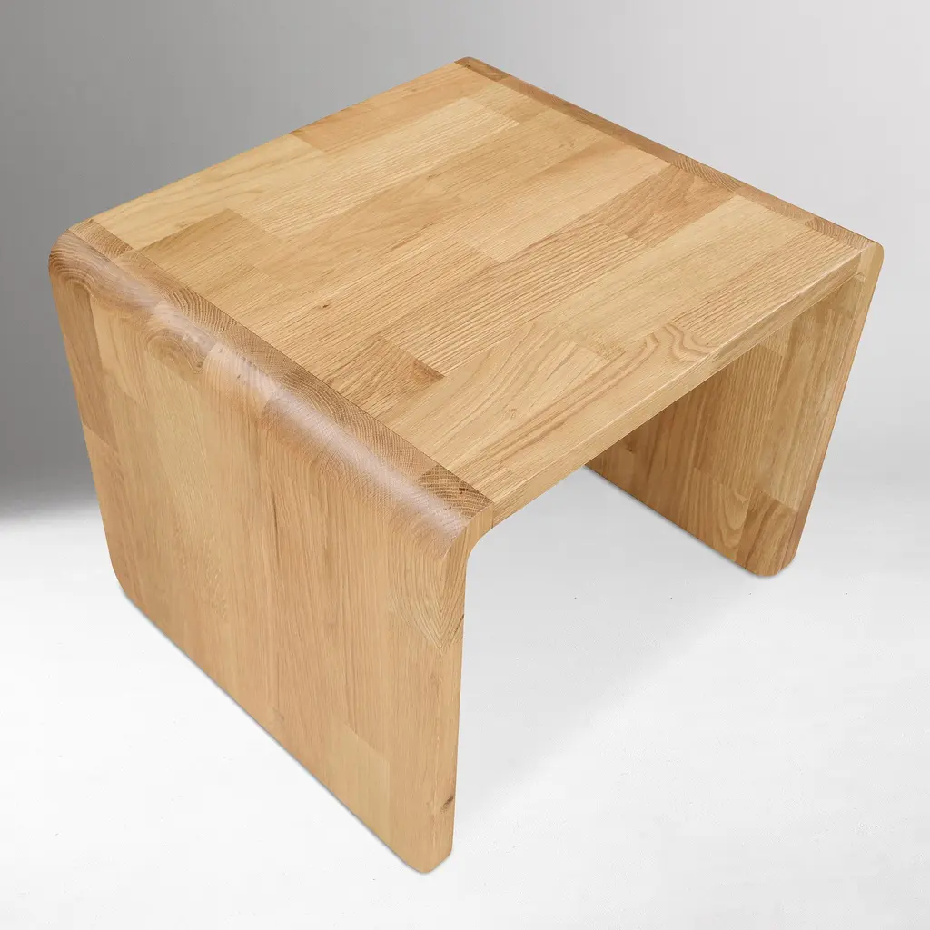 Sculptural C-shape tucks neatly under sofas or chairs. Crafted from solid wood for lasting quality. Compact footprint, big on function. A modern accent that moves with you.