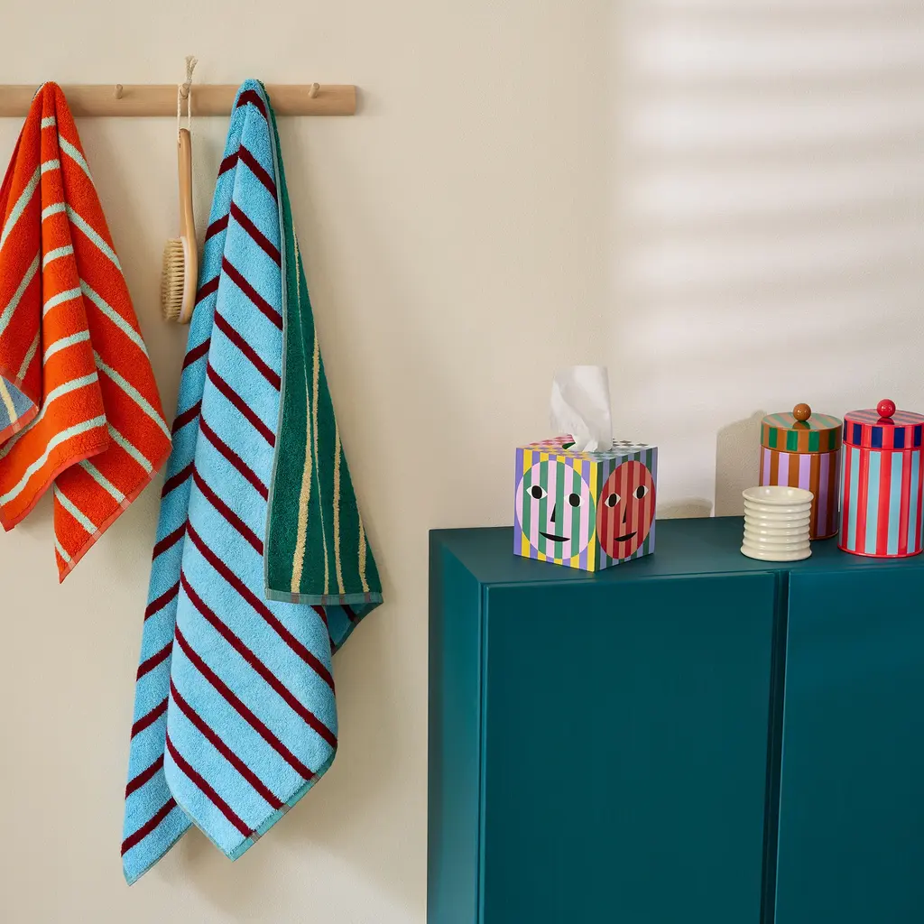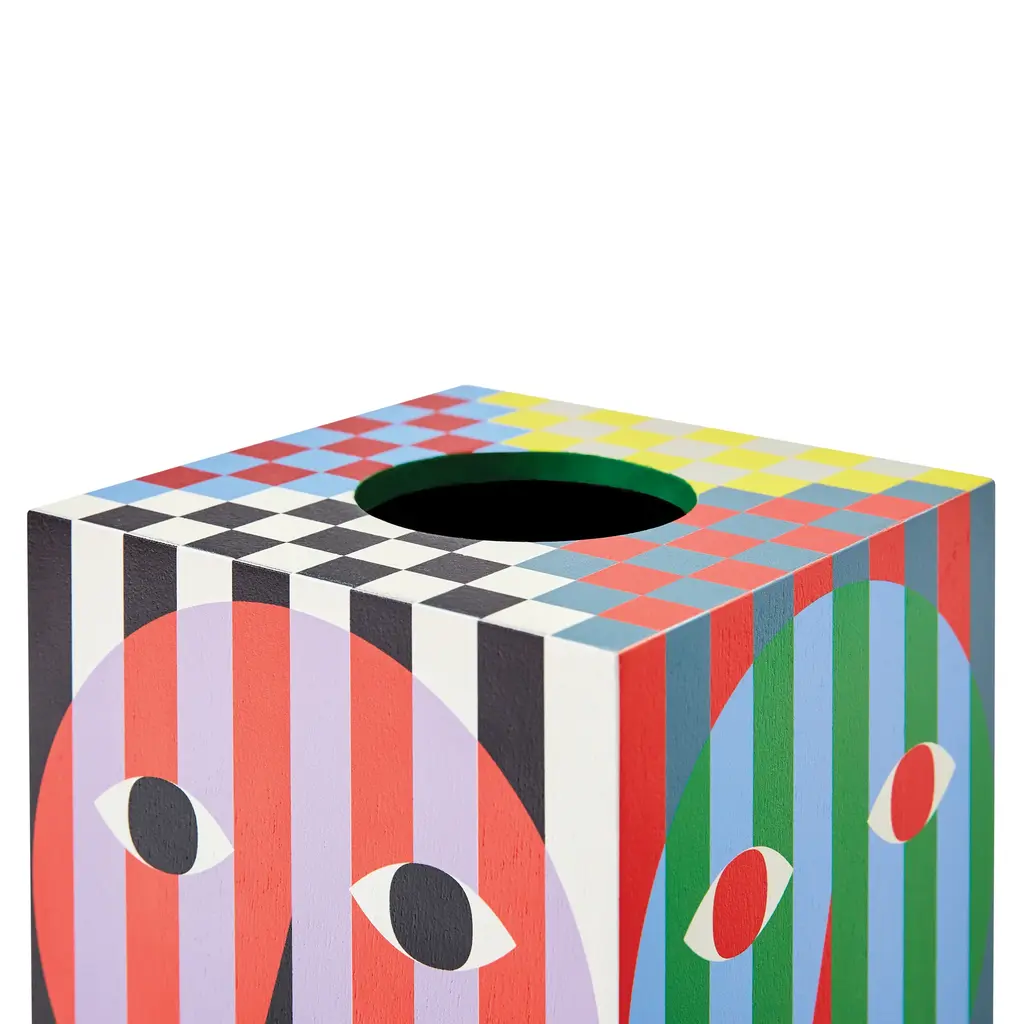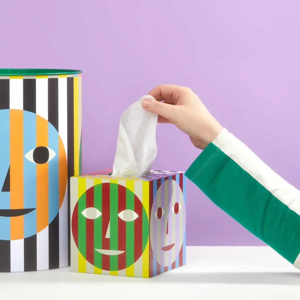 MoMA Exclusive. Everybody needs a tissue sometimes. Take comfort—and company—from this fact whenever you see the cheerful, colorful graphic faces on this Dusen Dusen box, designed to fit over the top of a standard box of tissues. Designed in her signature style by Ellen Van Dusen, the Everybody Tissue Box is based on the design of a limited-edition, hand-painted tissue box she created for the Faces show held at Fredericks & Mae in the fall of 2018. Placed on your vanity, in the bathroom or on a side table, the Everybody Tissue Box adds color and surprising artistry to the sight of an everyday necessity.