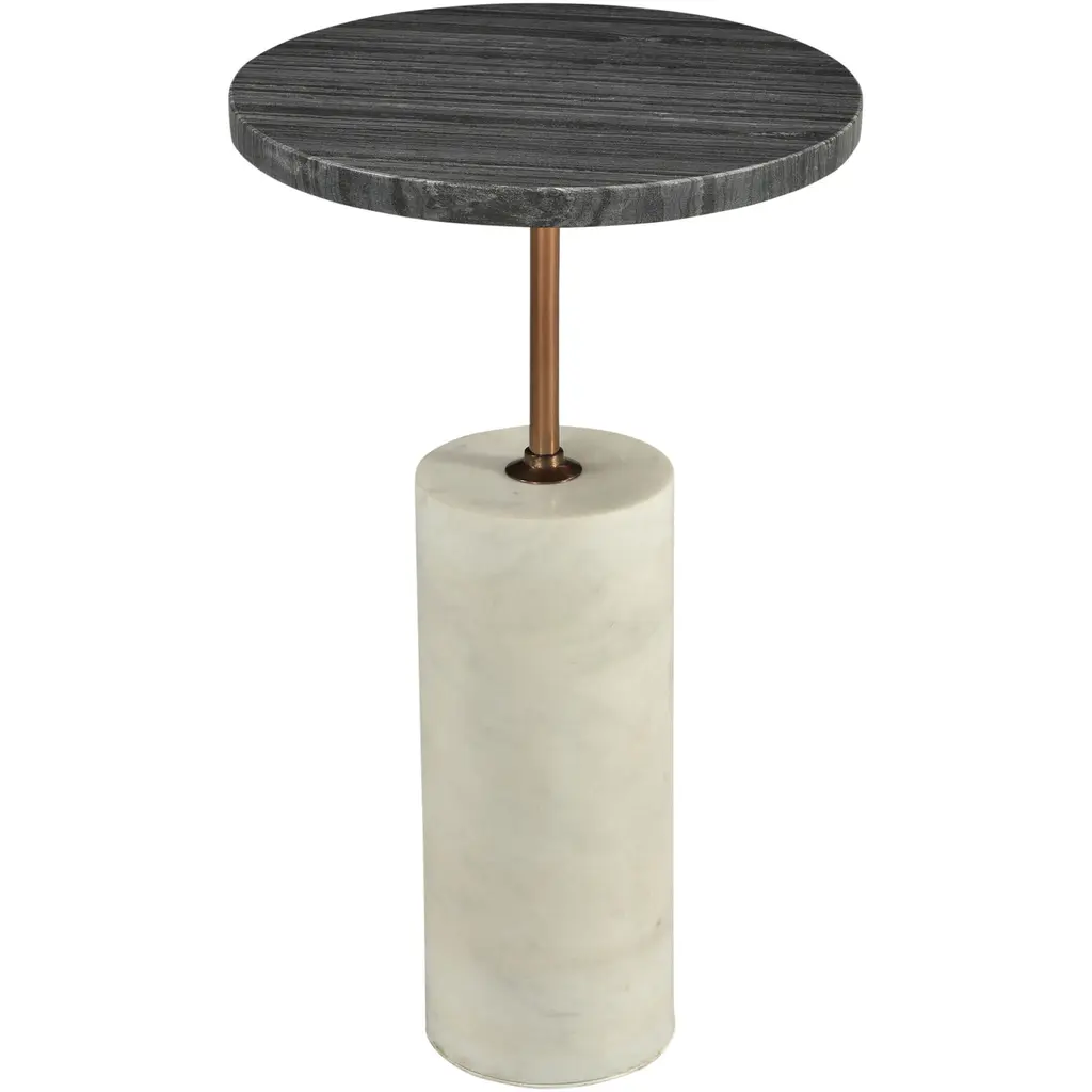 A mix of black and white marble, the Dusk accent table brings together contemporary modern design with minimalism and structure-play. This table is versatile and unique with a stunning white marble base, a brass-finished iron post, and moody grey marble top —the perfect wow factor for your living space.