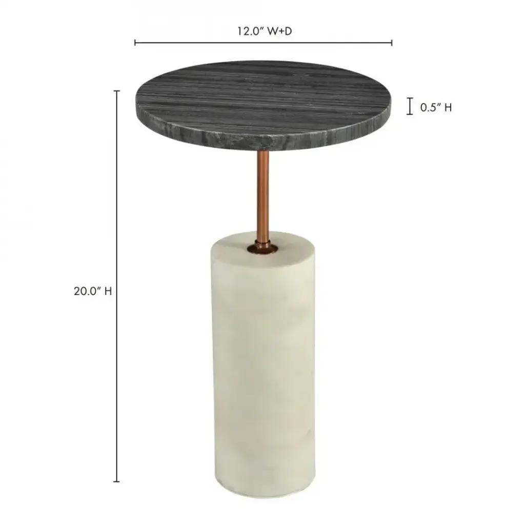 A mix of black and white marble, the Dusk accent table brings together contemporary modern design with minimalism and structure-play. This table is versatile and unique with a stunning white marble base, a brass-finished iron post, and moody grey marble top —the perfect wow factor for your living space.