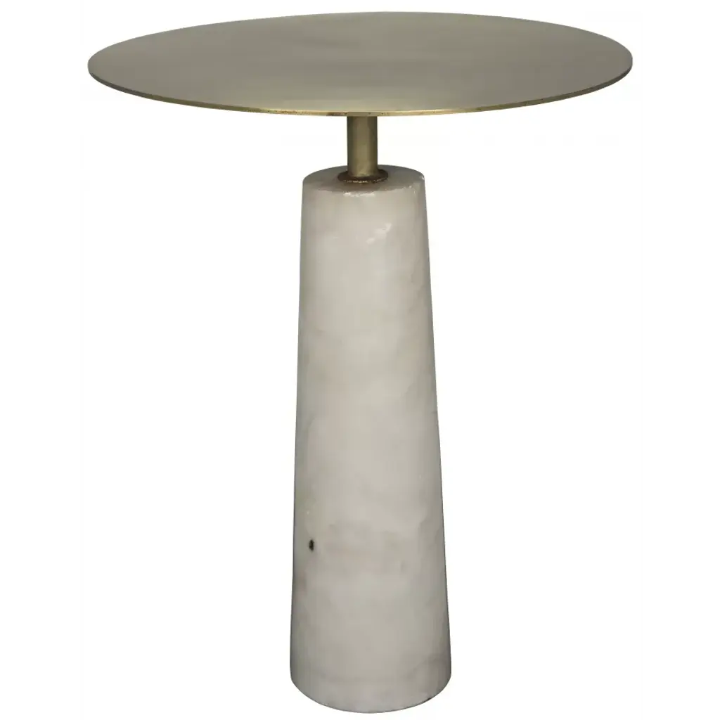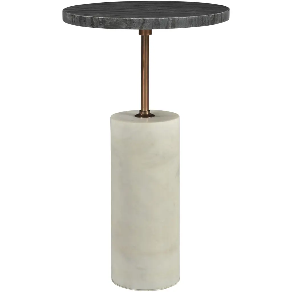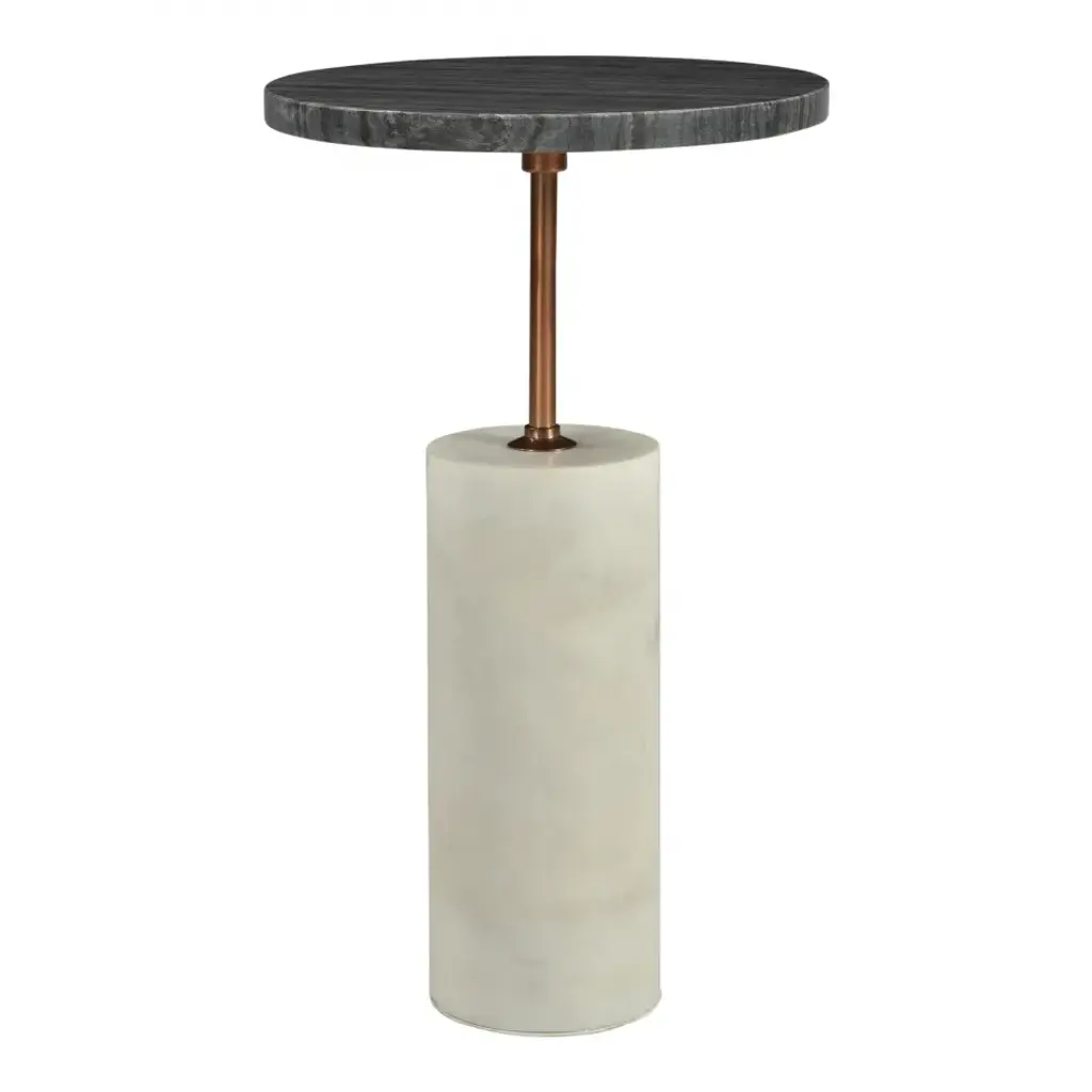 The Dusk Accent Table from Moe's Home Collection offers a mix of simple contemporary styles produced with eloquently inspired materials. A pale cylinder base secures the table, sending up a slender and clean-surfaced stem to a darker, disc-shaped top. The subtle modern lines are enhanced by the natural surface of each stone element, making each table distinct from any others while still allowing it to coordinate well when placed with similar neighbors.