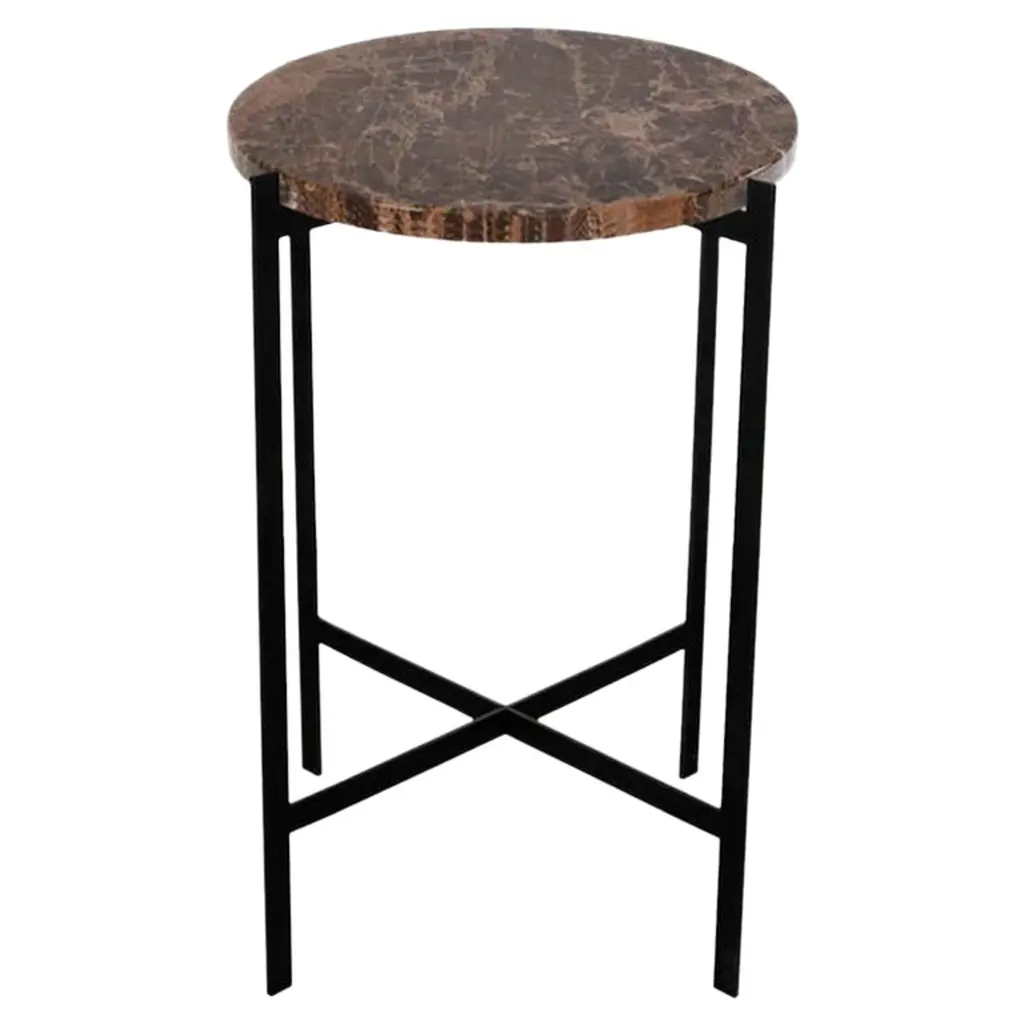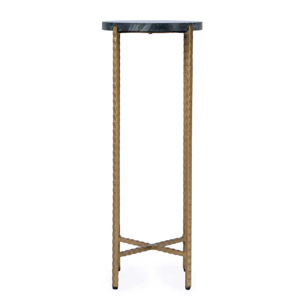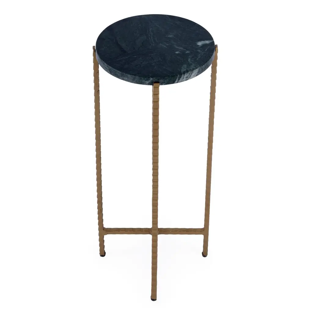 This plain and simple round accent table is nothing less than fashionable. The twisted iron legs gracefully support a smooth marble slab, creating a harmonious blend of elegance and functionality. This table caters to your needs in both style and space, making it a versatile addition to any room. Use it in pairs as petite end tables flanking your modern sofa, or place it in the entryway with a basket atop to catch your keys. Its understated charm and timeless design make it a perfect companion for your home, inviting admiration and adding a touch of romance to your living space.