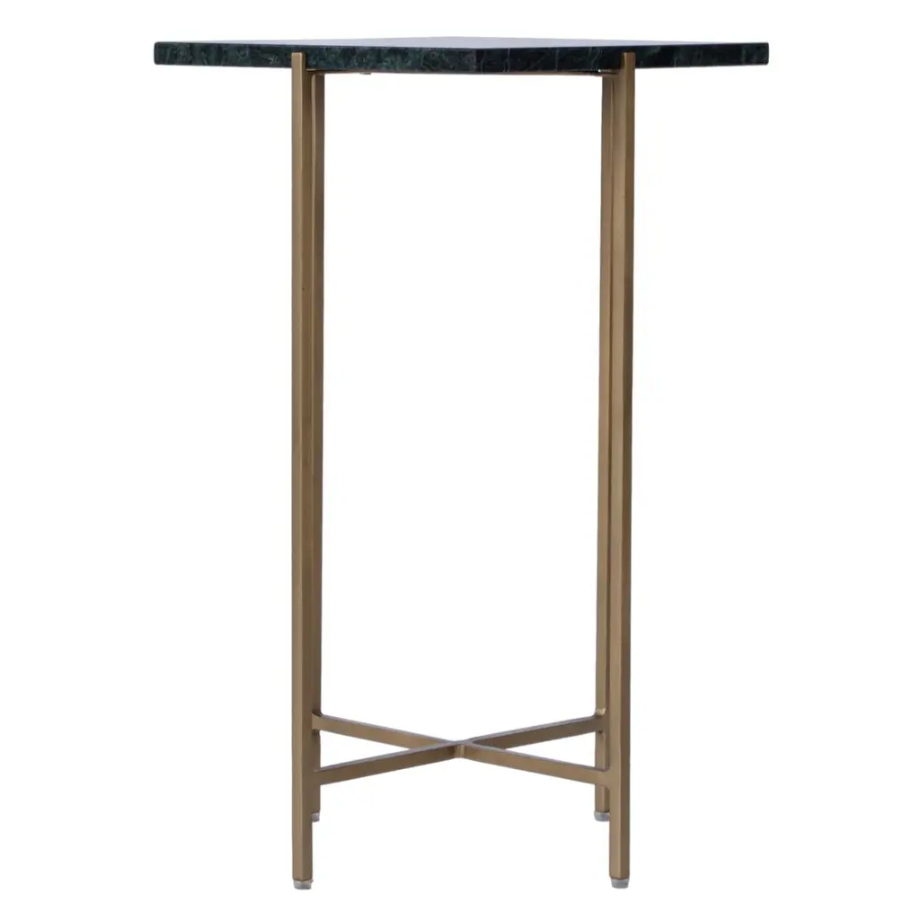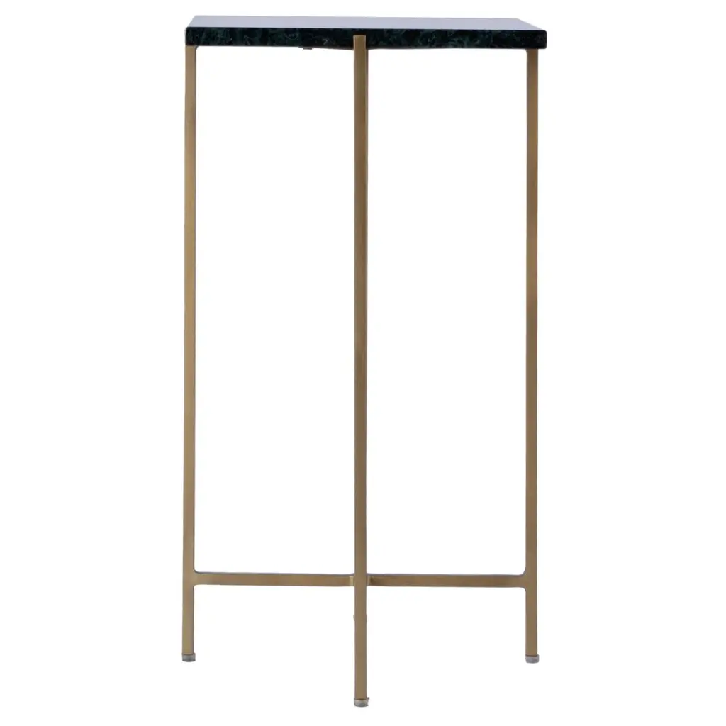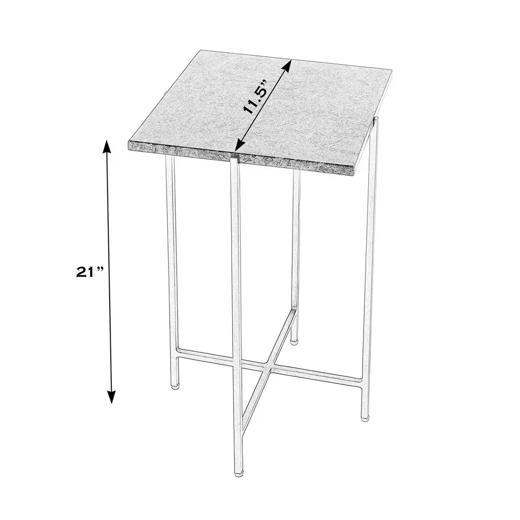 This plain and simple square accent table is nothing less than fashionable. The straight iron legs support a smooth marble slab, creating a harmonious blend of elegance and functionality. This table caters to your needs in both style and space. Use it in pairs as petite end tables flanking your modern sofa, or place it in the entryway with a basket atop to catch your keys. Its understated charm will effortlessly elevate any room, inviting admiration and sparking conversation.