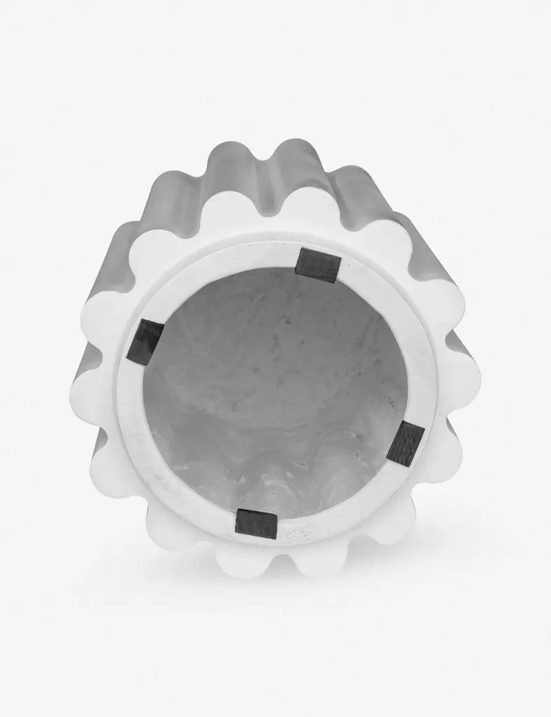 Dramatic lines and sculptural appeal strikingly come together in this concrete side table. The design features a channeled silhouette for an eye-catchingly fluid form. Add a bit of polish to your patio or living room look with the modern appeal of this versatile end table.