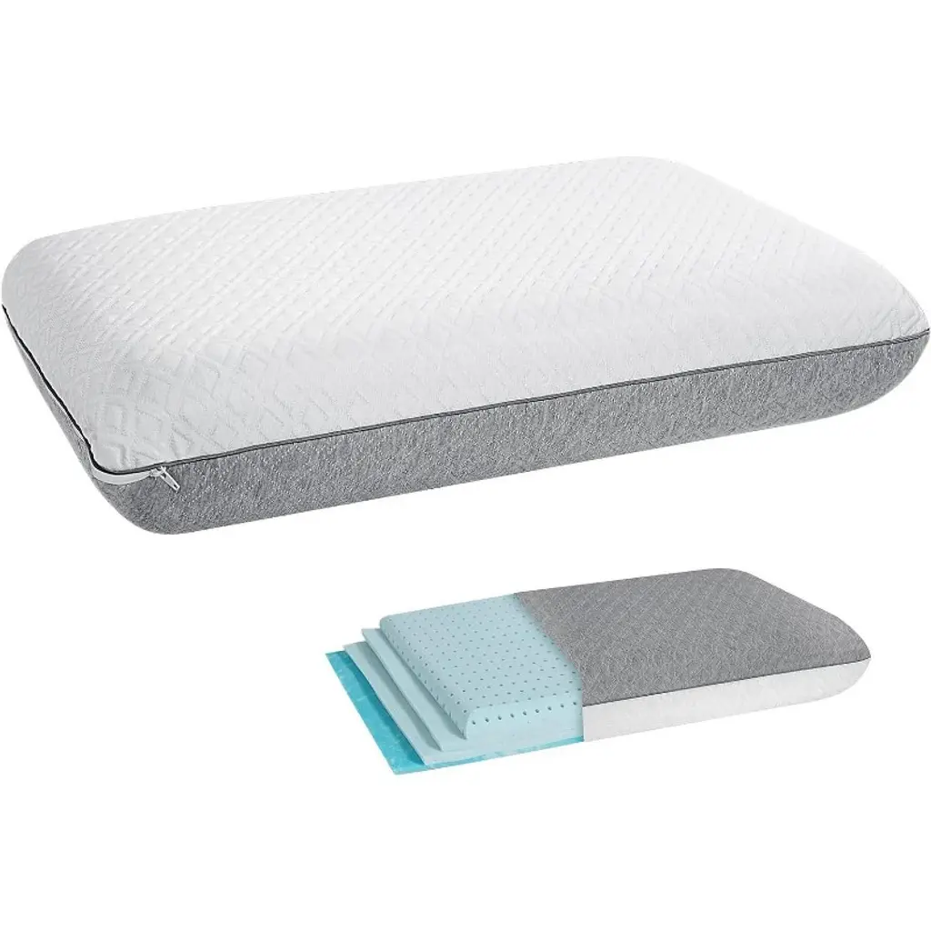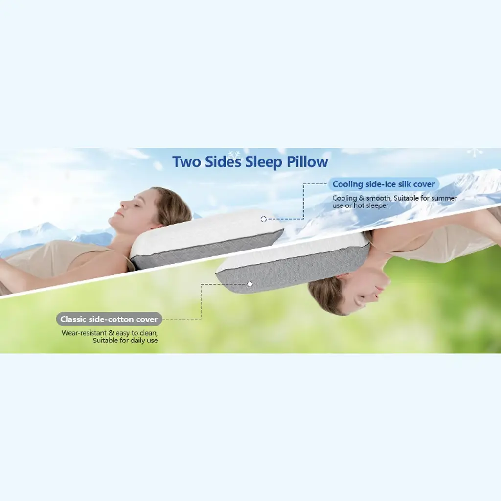 Our adjustable memory foam pillow boasts three different memory foam layers that can be adjusted in height and firmness. Additionally, it features a double-sided sleeping cover and Air circulation design for a truly refreshing sleep experience This adjustable hard pillow has a 1.5" airflow layer, two 0.75" cooling gel infused layers, and a 1.5" high-support layer. You can adjust the height and support by adjusting the position and quantity of layers. It's an ideal pillow for tummy/stomach/side sleepers. The two sides sleep flat pillow has a cooling ice silk-covered side for summer or hot sleepers, and a classic cotton-covered side that is durable and easy to clean for daily use. You can use this cold pillow that stay cold or any kinds of situations. This cooling pillow is fiberglass free, no harmful chemicals. Each layer of foam includes an inner pillowcase that protects the memory foam from tearing when adjusting the pillow, ensuring its longevity.