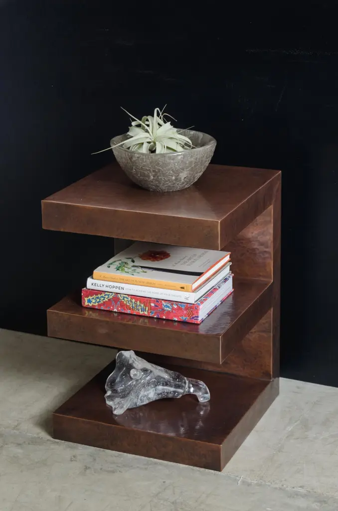 E Side Table, Antique Copper By Robert Kuo, Hand Repousse, Limited Edition