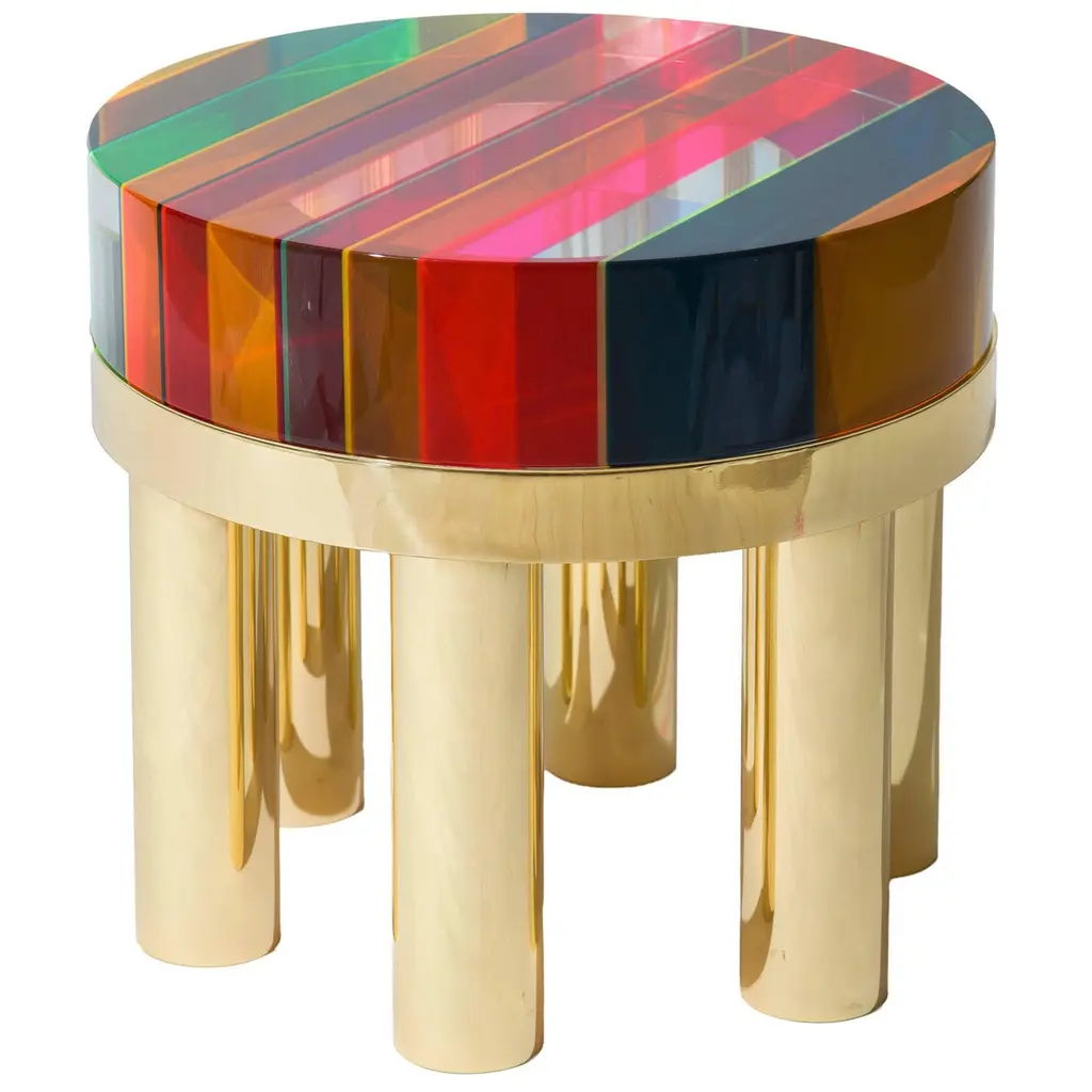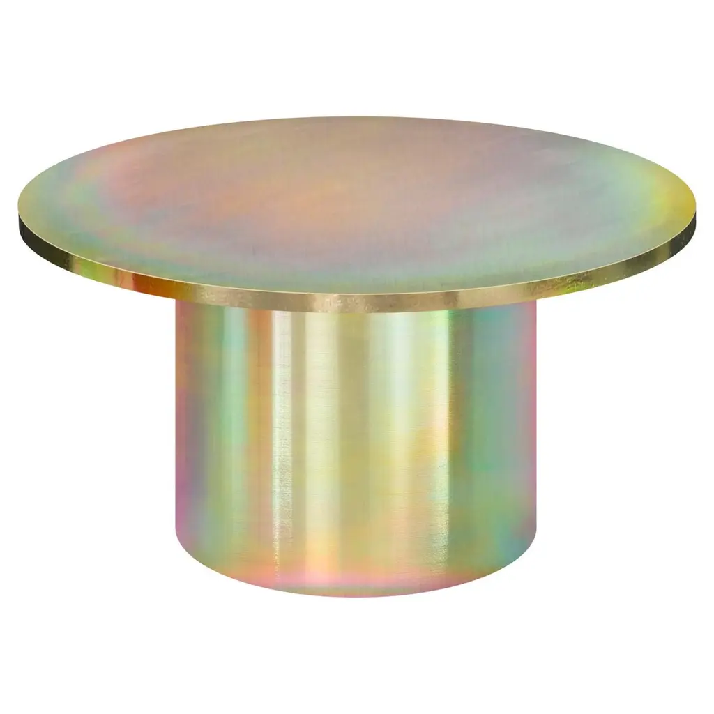 he iconic side table ENOKI by Philipp Mainzer is introduced in all metal, highlighting its essential and minimal form. Made of steel, powder-coated in colours silk grey, pure orange and jet black or zinc-plated in a rainbow hued version the table illustrates a pure sculptural quality and serves in diverse settings.Thickness of steel table top measure 15 MM (5/8 INCH)