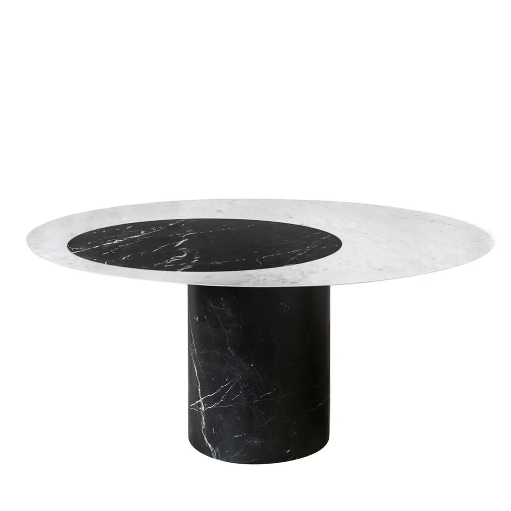 With the smart and playful side tables Enoki, e15 introduces marble for the collection, applying it to novel form. Cleverly toying with material, color and dimensions, the versatile side tables are presented in combinations of rich marble and solid wood and colored steel. Enoki is available in three different diameters and heights with a 30 MM (1 1/8 INCH) thick marble top, which are combined with harmonizing or contrasting colored steel bases in subtle or unusual combinations. In addition to other interesting combinations, pure shades of signal white and jet black for the entire table are also offered. The marble is equipped with a matt oiled finish, which is protective, yet requires maintenance. The side tables have adjustable feet and are delivered in two pieces. This side table comes in different table tops with Jet Black base.