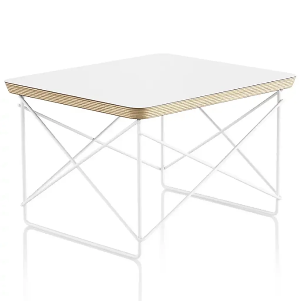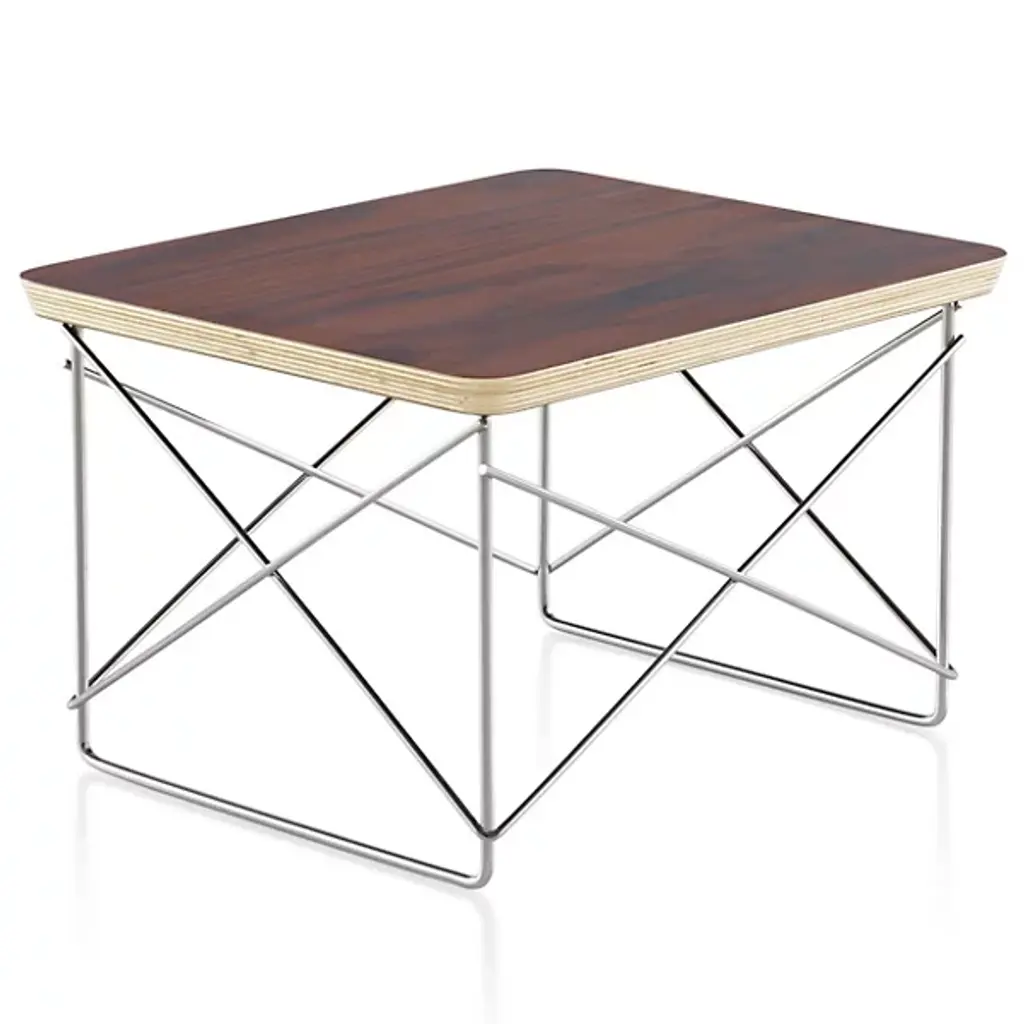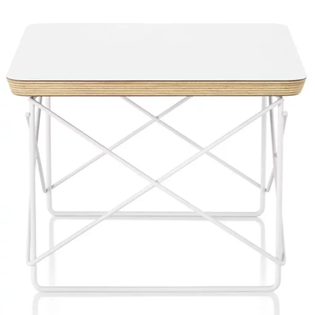 In the late 1940s, Charles Eames noted the “fantastic things being made of wire.” That fascination led to the development of the Herman Miller Eames® Wire Base Table, an innovation that became a compact wonder. Lightweight and sleek, this diminutive table with multi-layered veneer and wire makes a great option to use for bedsides, end tables or occasional pieces. Stands on its own, or on top of each other in multiples as a stack.