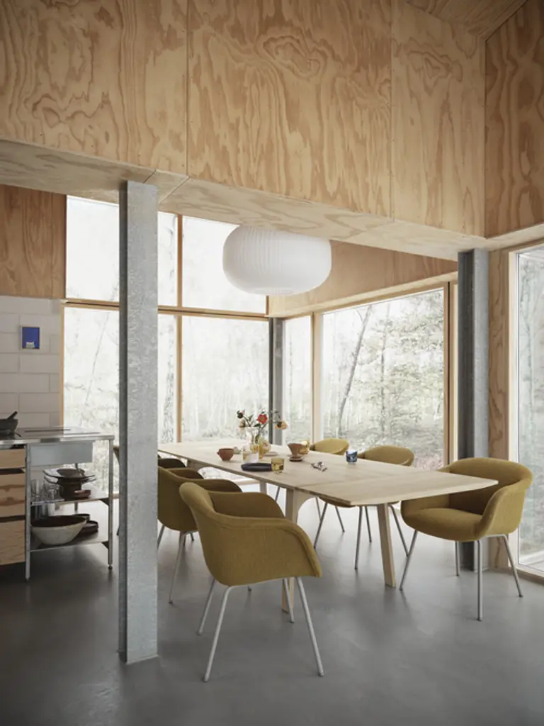 The Earnest Extendable Table brings new perspectives to the timeless Scandinavian wood table. The Earnest Extendable Table is EU Ecolabel Certified. By carrying the EU Ecolabel Certification, the product is guaranteed to have a reduced environmental impact throughout the total lifecycle of the product from raw material to disposal. Made from FSC™️-certified (FSC-C028824) wood, it features sculptural arched legs, a clear-cut profile, and a light expression tabletop. The table extends with manual apron pulls and a secure lock, all crafted in solid oak, seamlessly concealing its dual functionality. Available in two sizes, the smaller size comfortably fits 6 seats, expanding to 10, while the larger version accommodates 8 and extends to 12 seats — keeping the same shape once extended, with the extension leaves' wood grain going in a different direction than the table's, adding a unique touch. Pairs perfectly with all Muuto chairs.