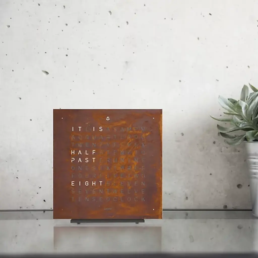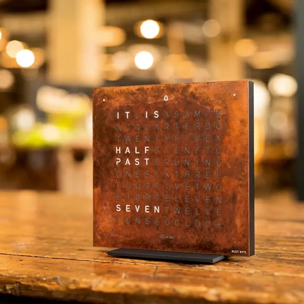 The EARTH 13.5 METAL Table Alarm Clock by QLOCKTWO is a compact and unique timepiece that illuminates a matrix of letters, spelling out the time of day to you. Crafted to complement your bedside table, this precision clock offers an alarm and a light sensor that automatically adjusts the LED brightness of this piece to match the surrounding environment. Sleep in peace with night touch technology, allowing the display to illuminate only for a few seconds when touched or opt for the nightlight function to keep your space softly illuminated.