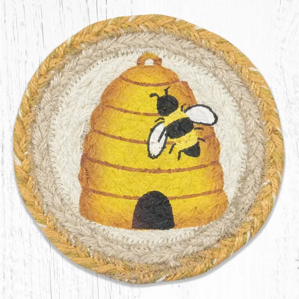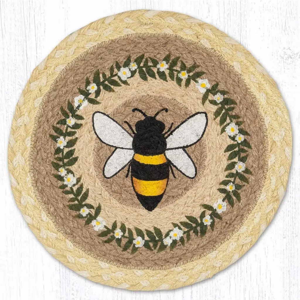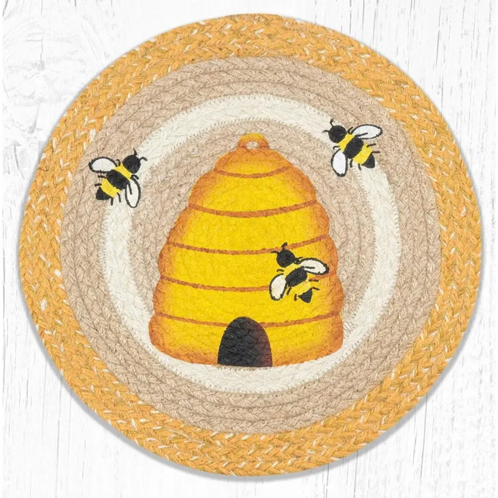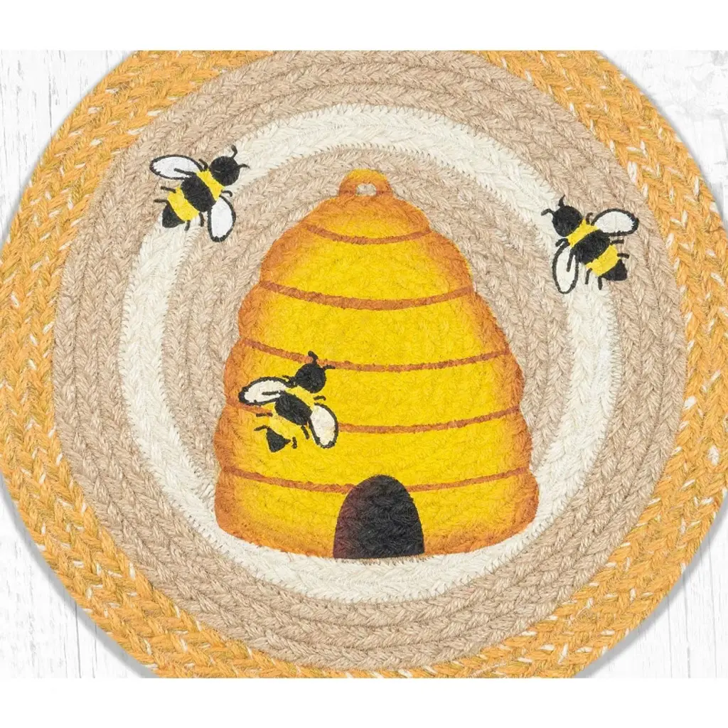 Earth Rugs Beehive Printed Round Placemat, 15"x15", Hand-stenciled Jute, Natural Table Accent With Rustic Bee Design