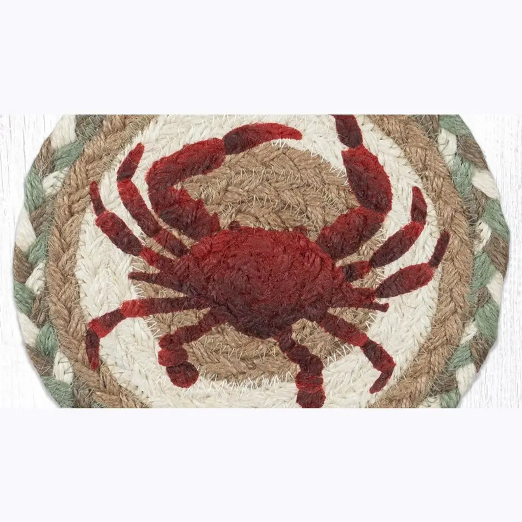 Earth Rugs Crab Round Large Coaster – 7"x7" Nautical Coastal Table Accent