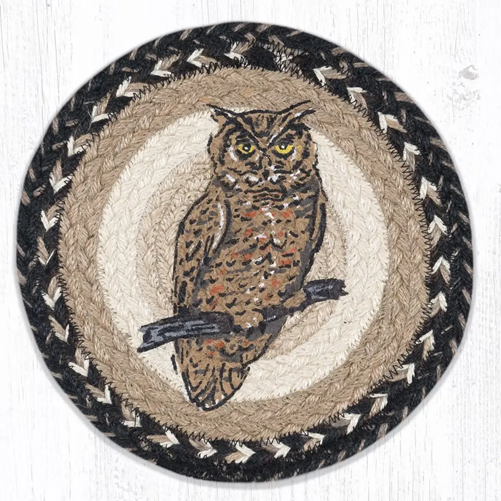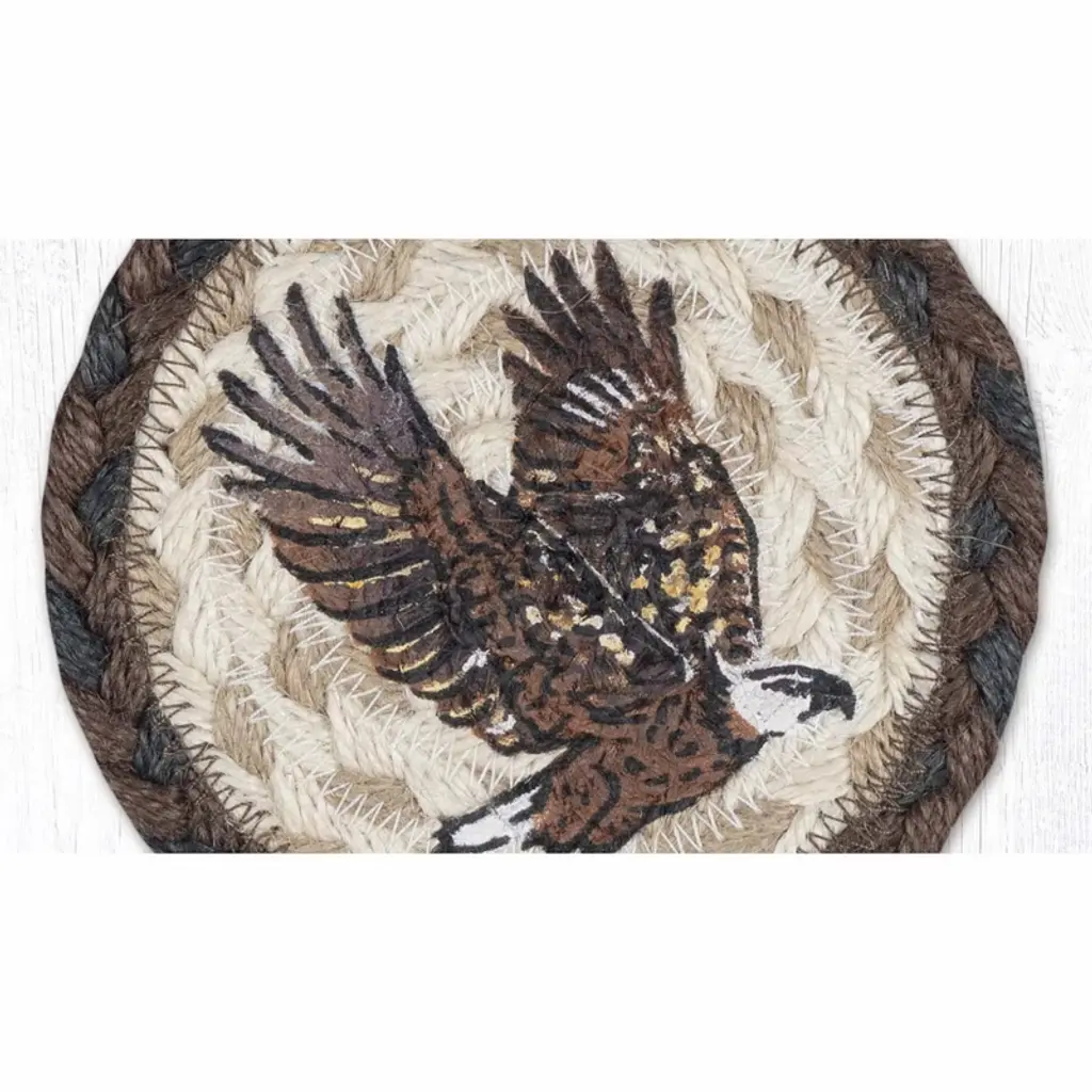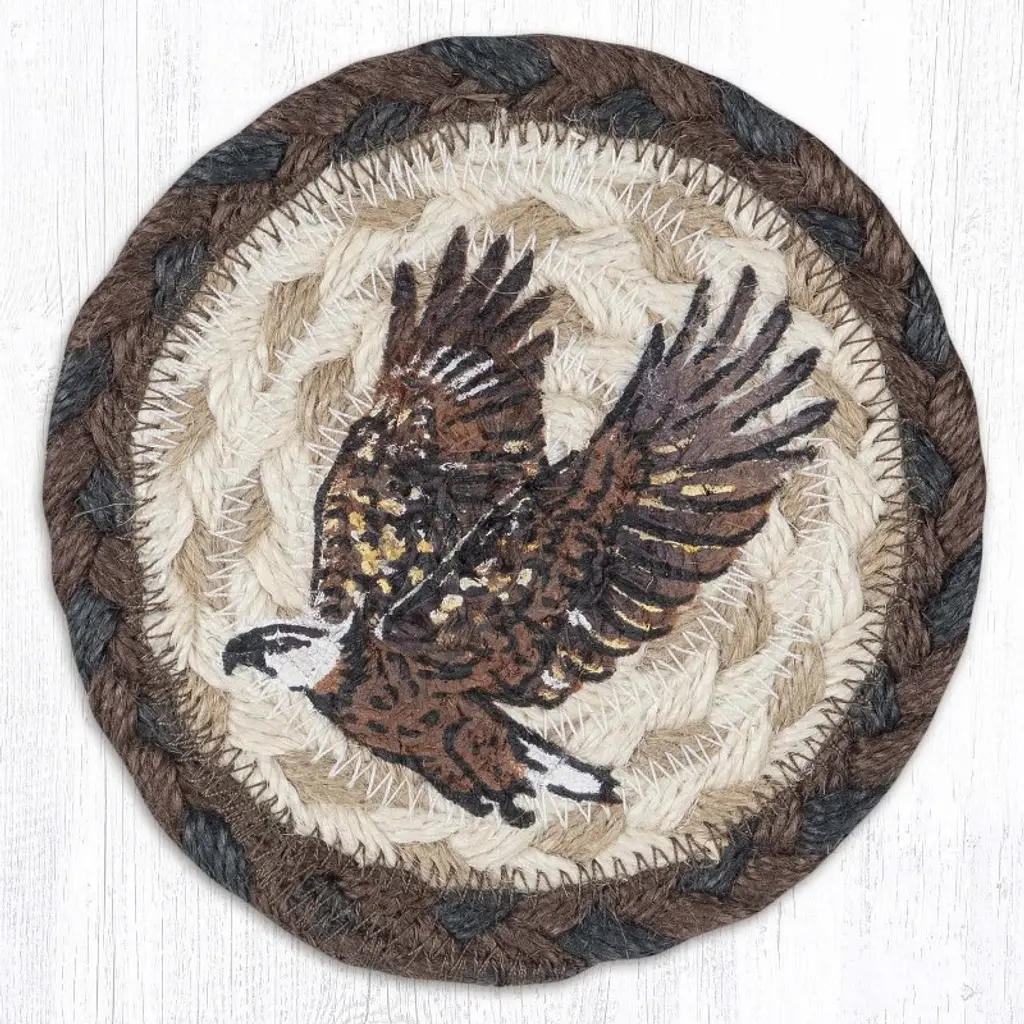 Earth Rugs Eagle Round Braided Coaster – 5"x5" Rustic Printed Jute Accent For Cabin Decor