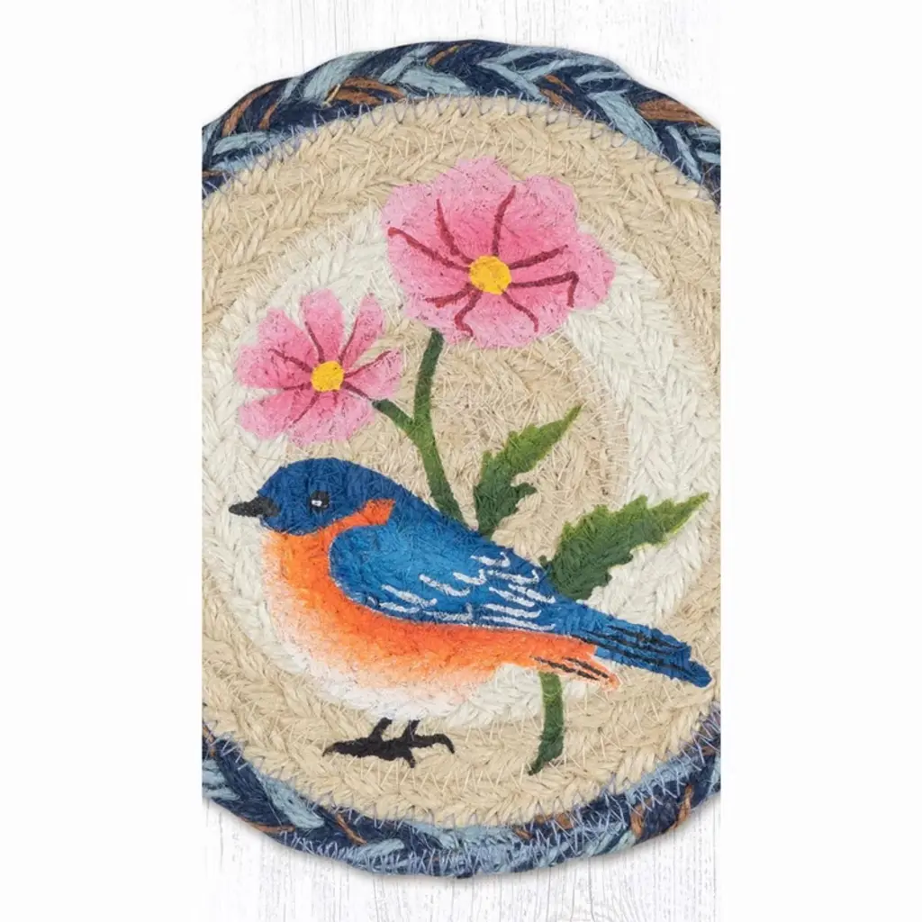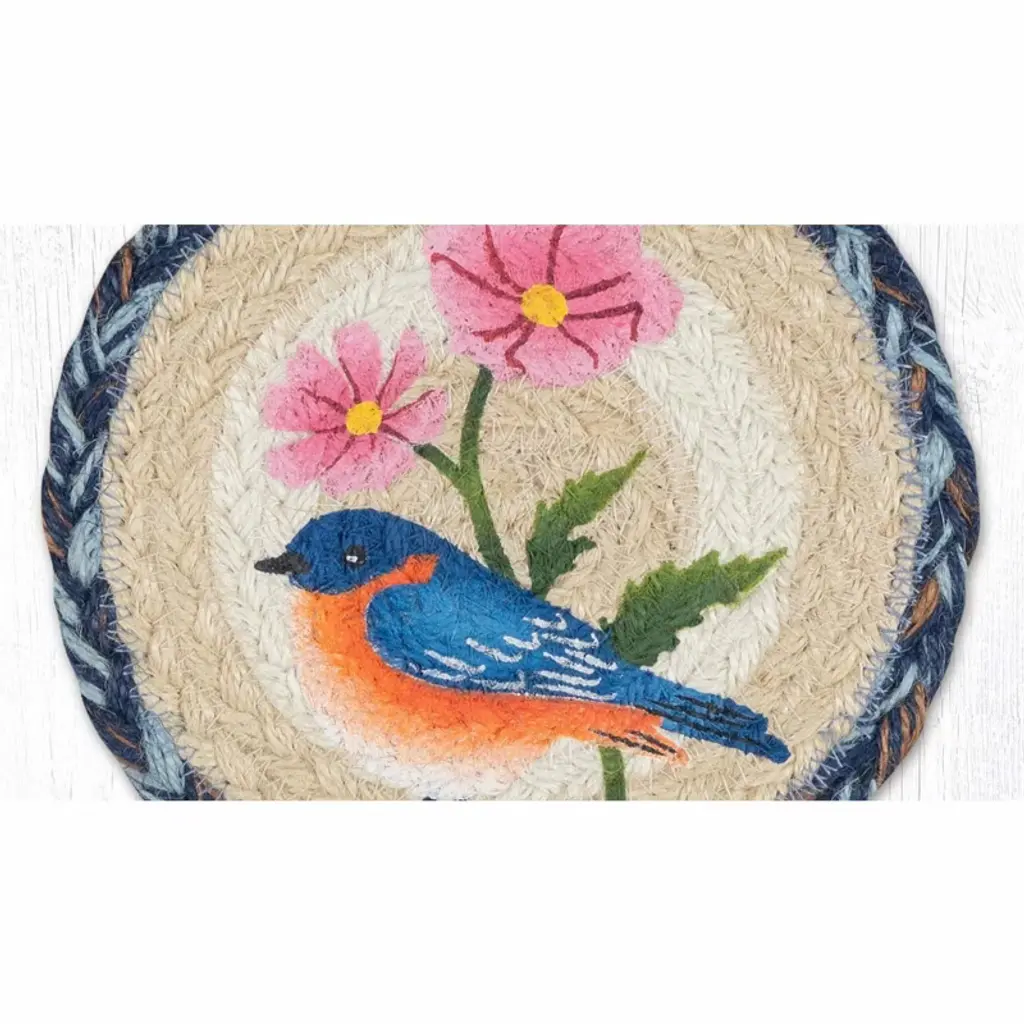 Earth Rugs Handmade Bluebird Round Coaster – 7" Country Rustic Tabletop Accent