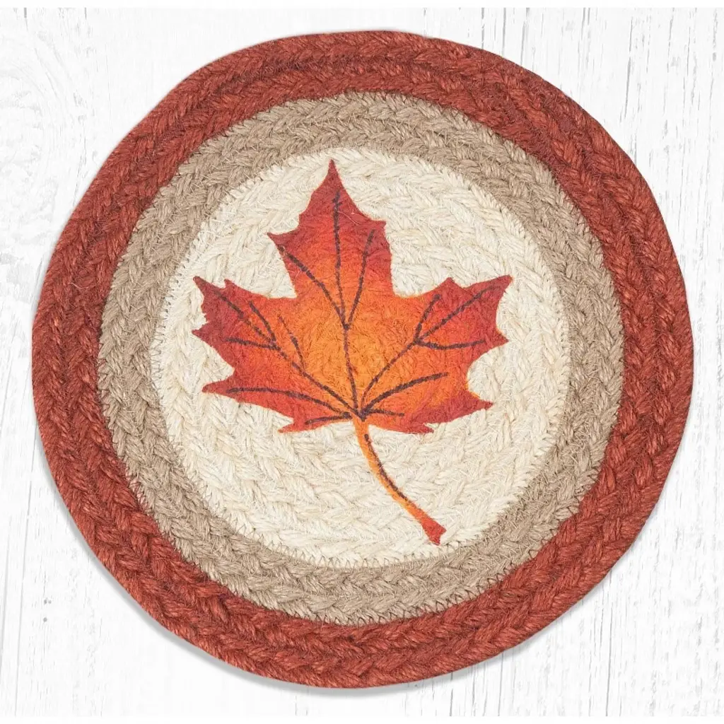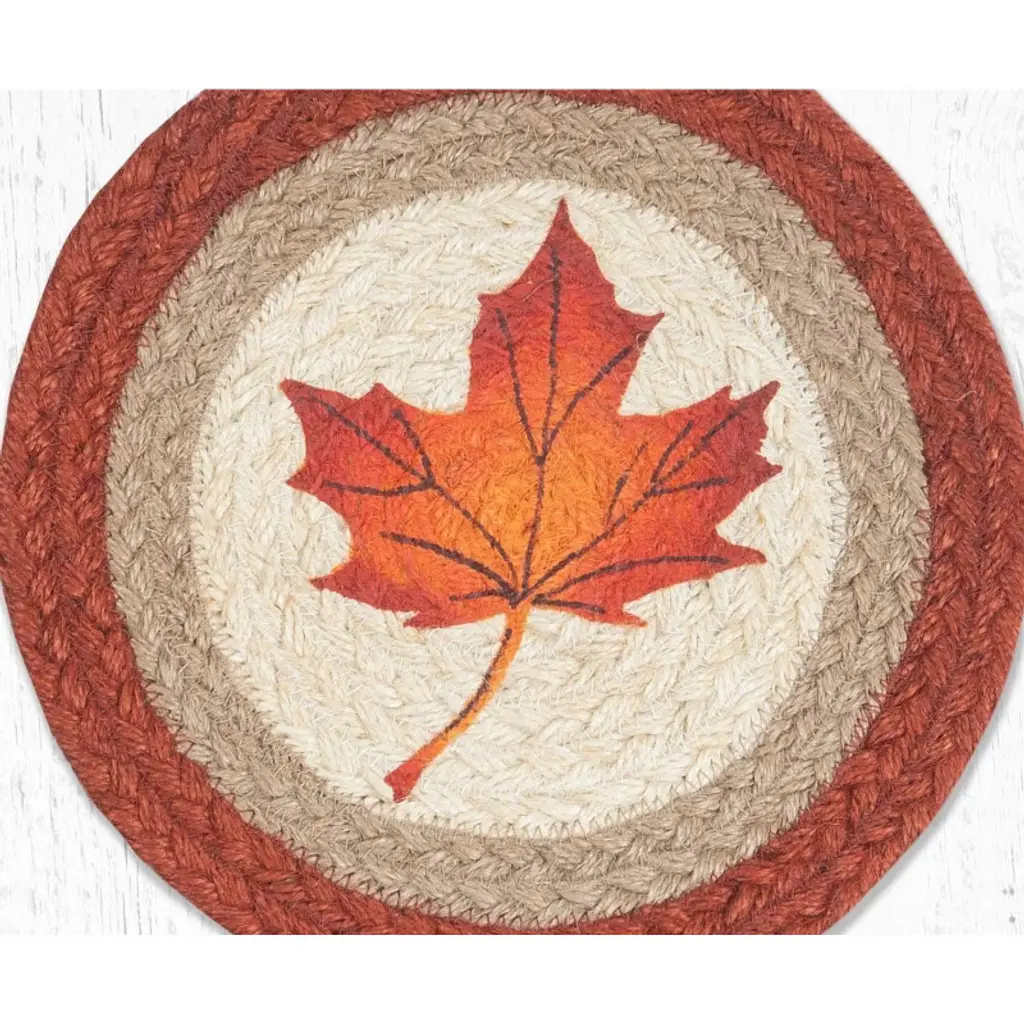 Earth Rugs Maple Leaf Printed Round Trivet – Rustic Braided Jute Hot Pad, 10"x10", Autumn Table Accent