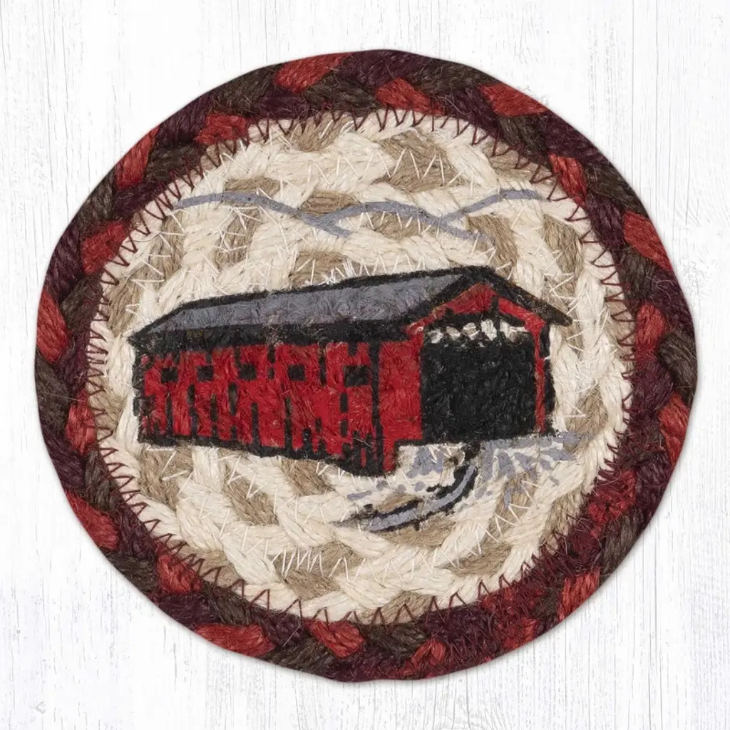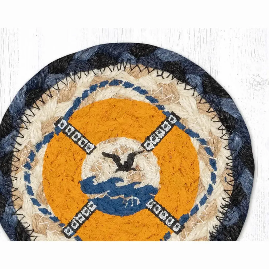 Earth Rugs Nautical Lifebuoy Printed Coaster – 5"x5" Jute Square, Coastal Red & Navy Decor Table Accent