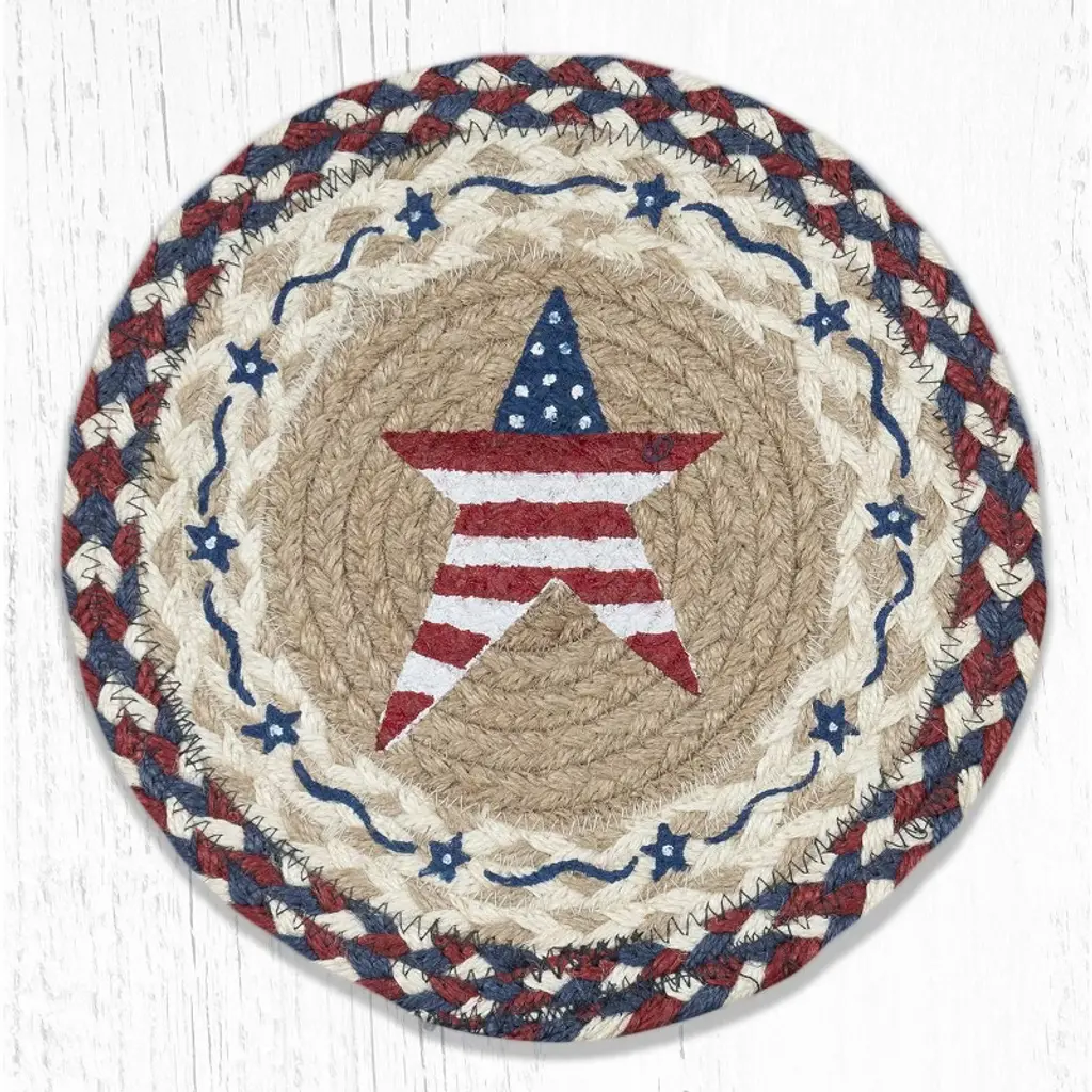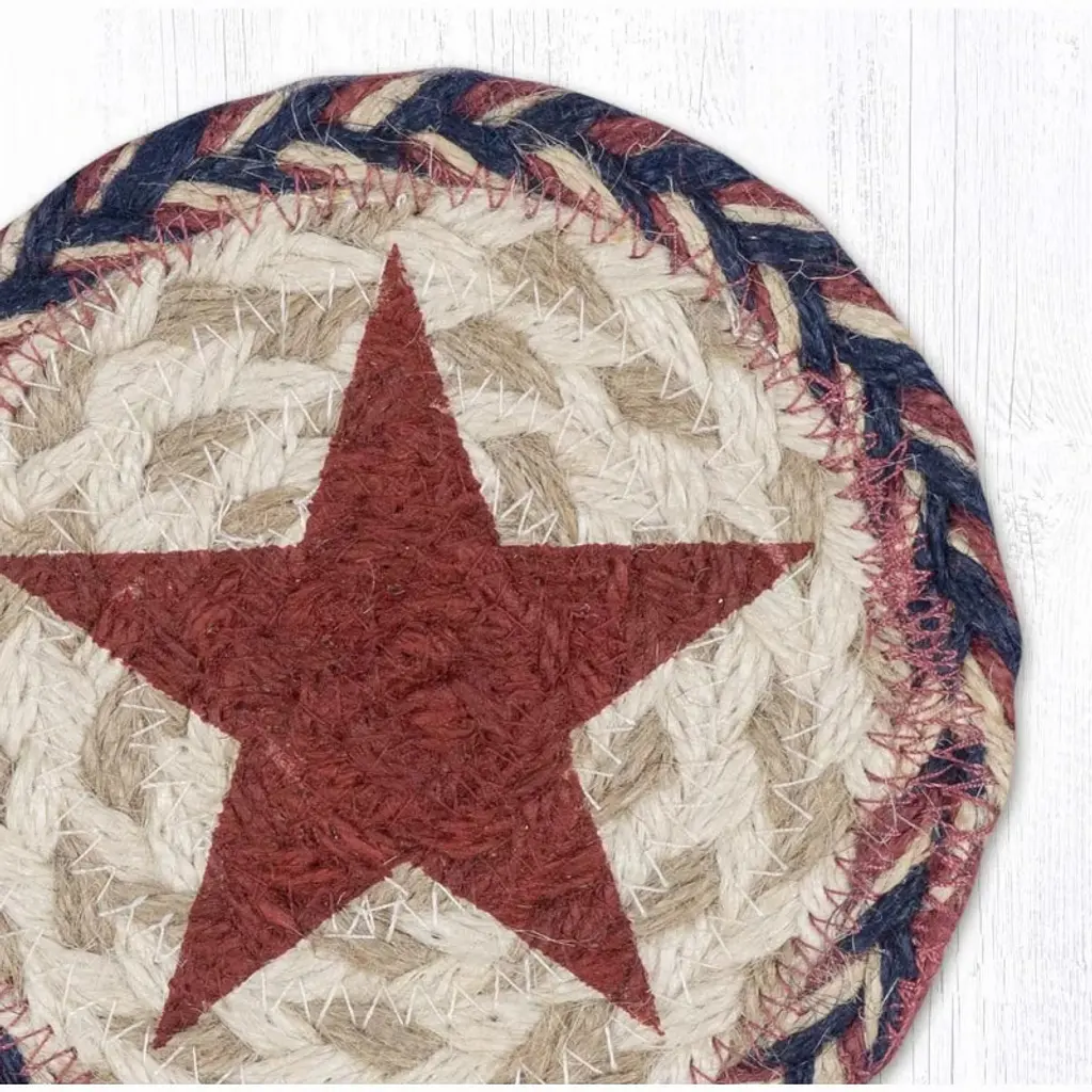 Earth Rugs Red Star Printed Coaster – 5" Round, Rustic Americana Style Table Accent