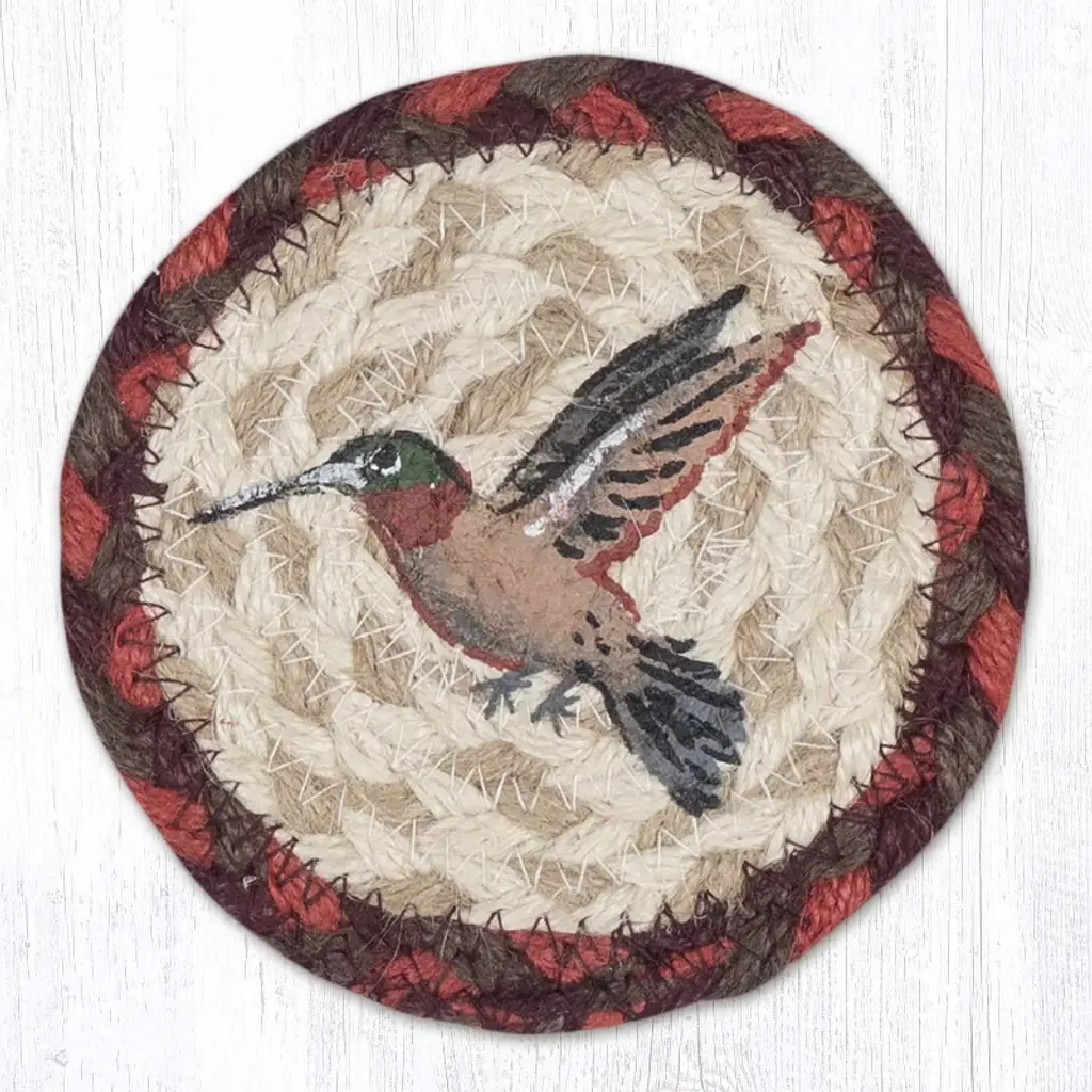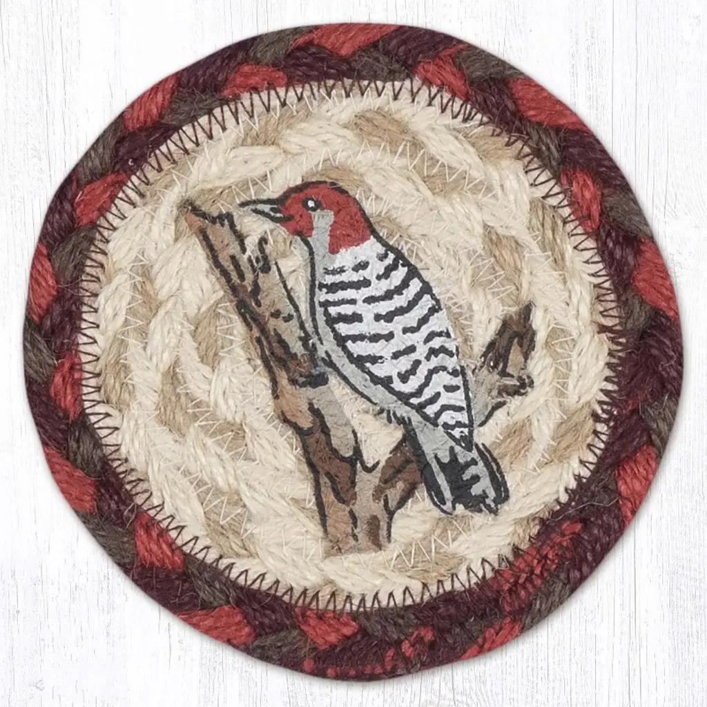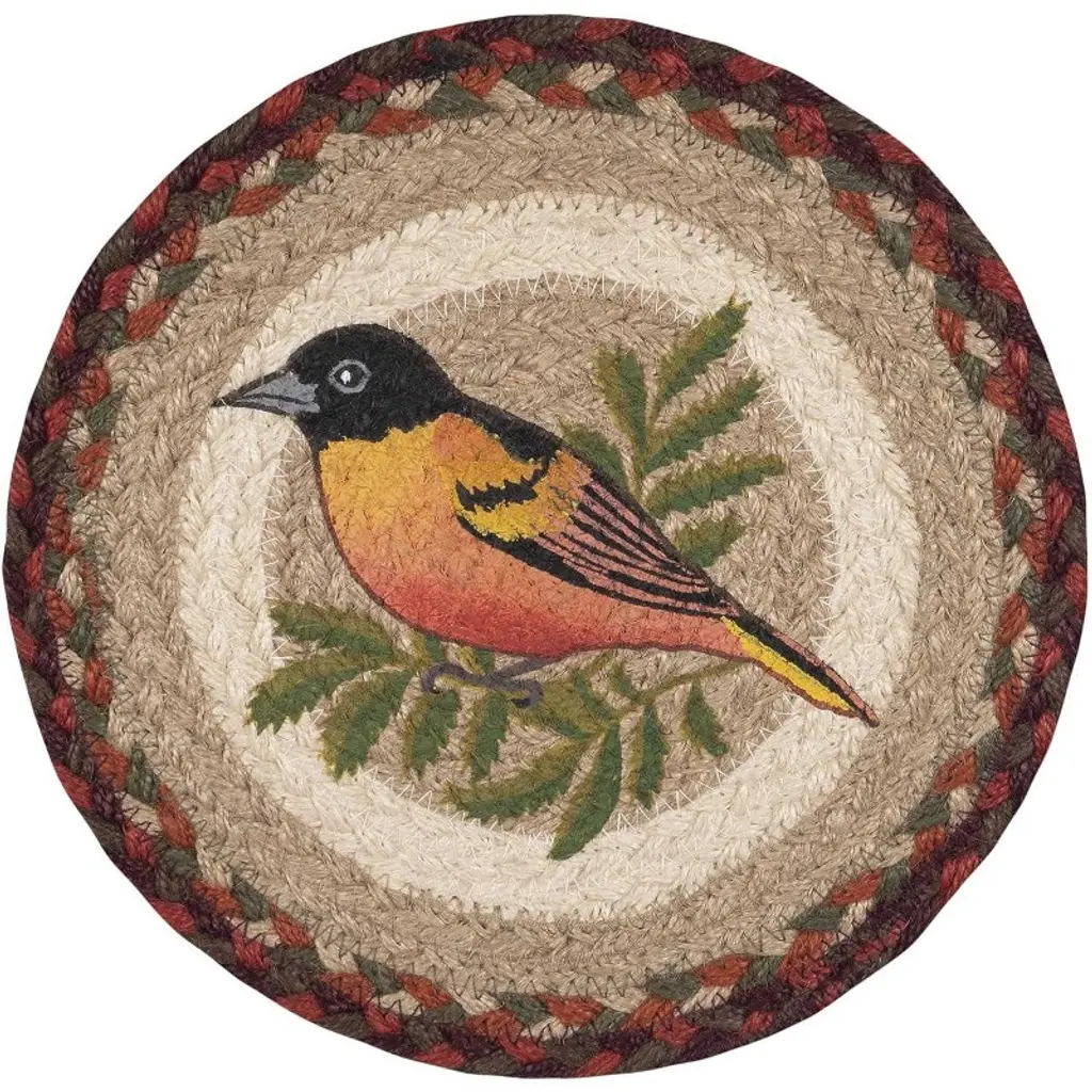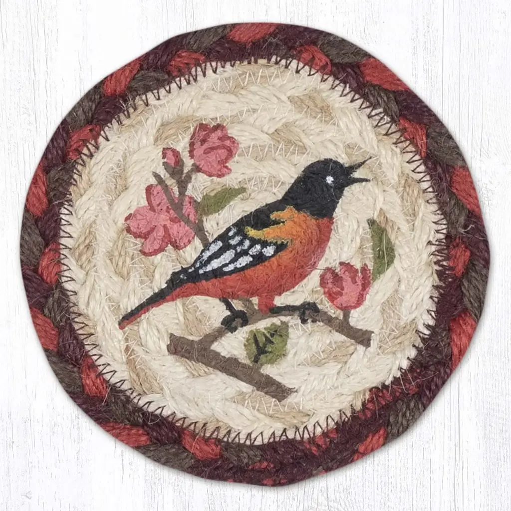 Earth Rugs Robin Printed Coaster – 5"x5" Braided Jute, Rustic Bird-themed Square Table Accent