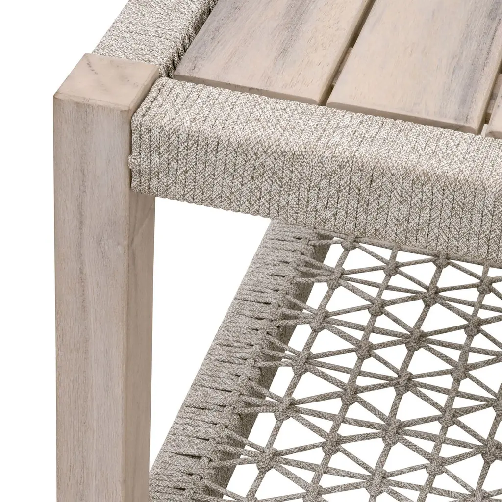 Easton Outdoor End Table, Taupe & White Flat Rope/gray Teak