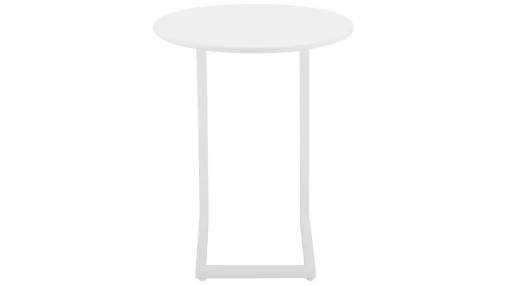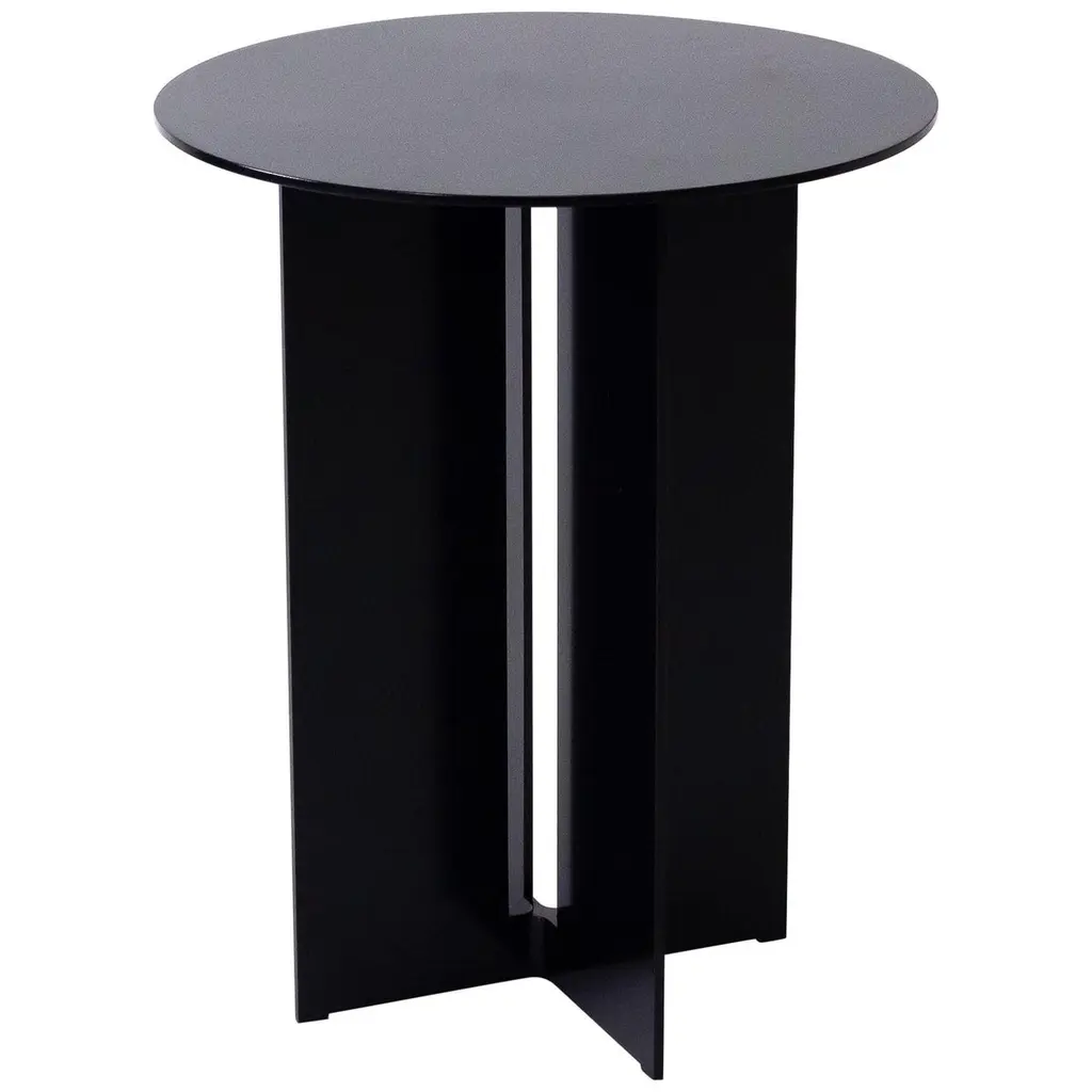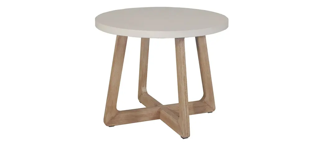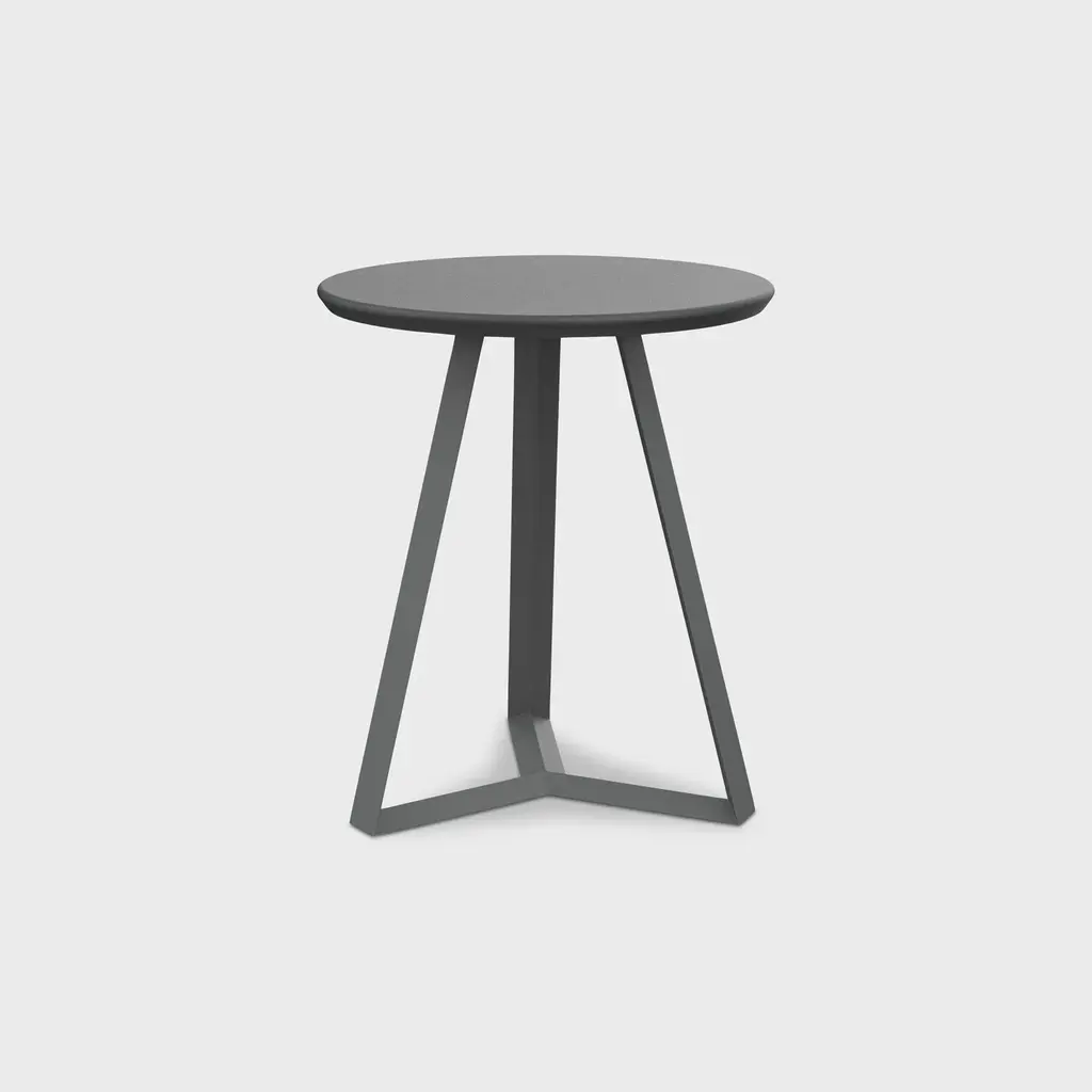 The Echo Side Table features a smooth, beveled edge top above alluringly angled legs that seamlessly flow into a crossed base.