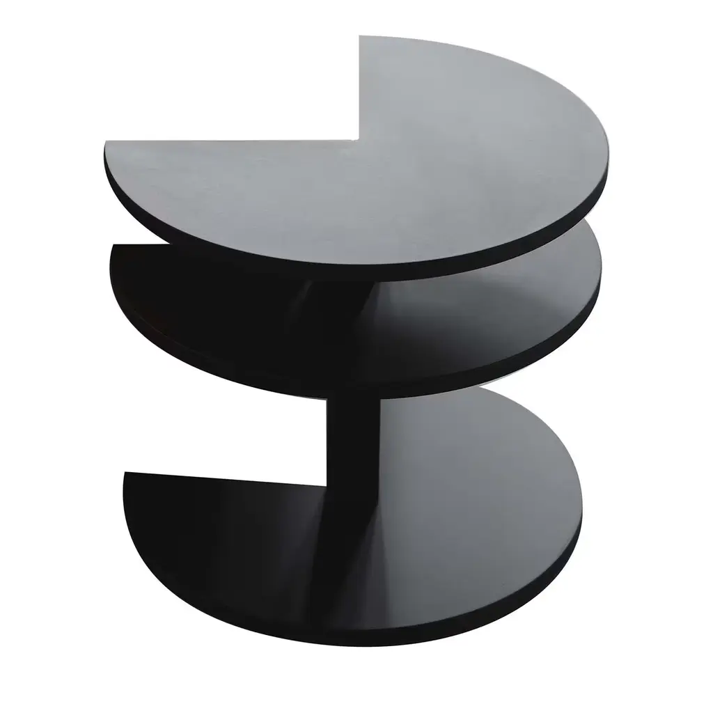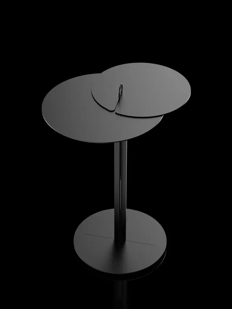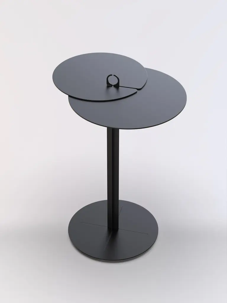 Side table made in lasercut metalsheet with an interlock black paint structure.