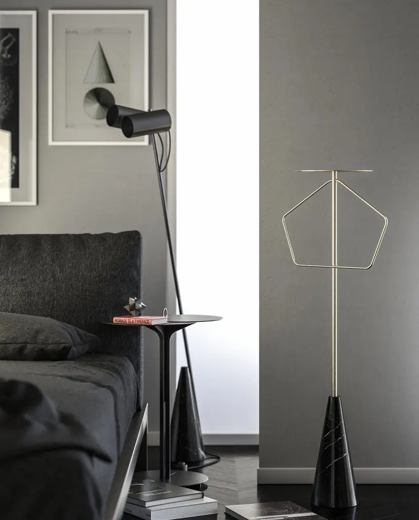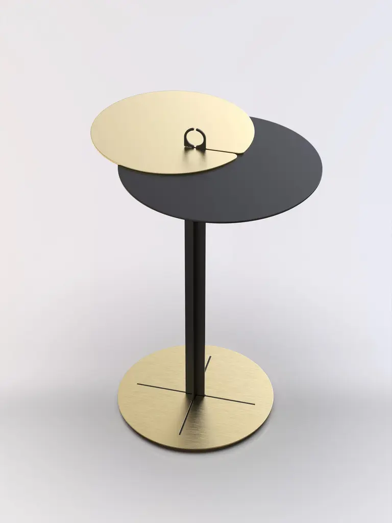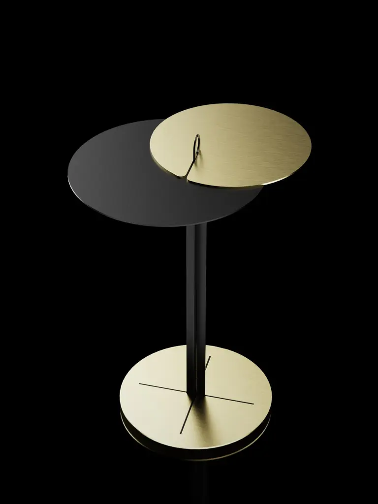 Side table made in lasercut metalsheet with an interlock black paint and brushed brass structure.