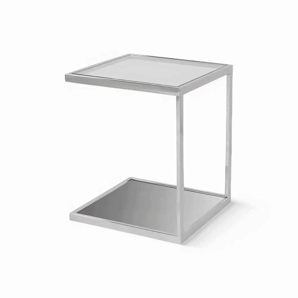 The Edan Side Table breaks the mold in sleek, modern, and efficient design. Comprised out of a stainless-steel frame and a tempered glass top, this piece is a great addition to any fashion forward home. This chic table is ideal for pulling up alongside an office chair or living room sofa. If you’re short on space worry not, the condensed architecture of this piece fits practically anywhere! Available for local delivery only. Tempered Glass Top | Polished Stainless Steel Legs | Mirror Base | Weight Capacity: 25 lbs