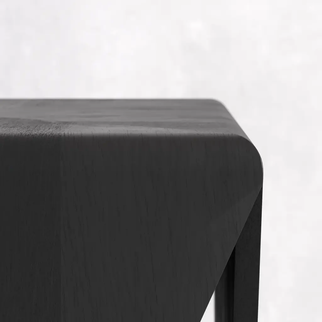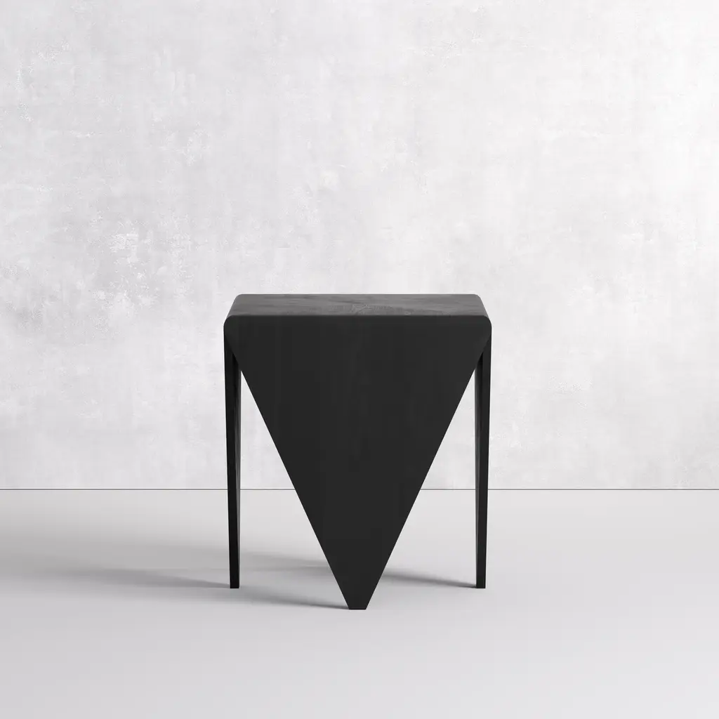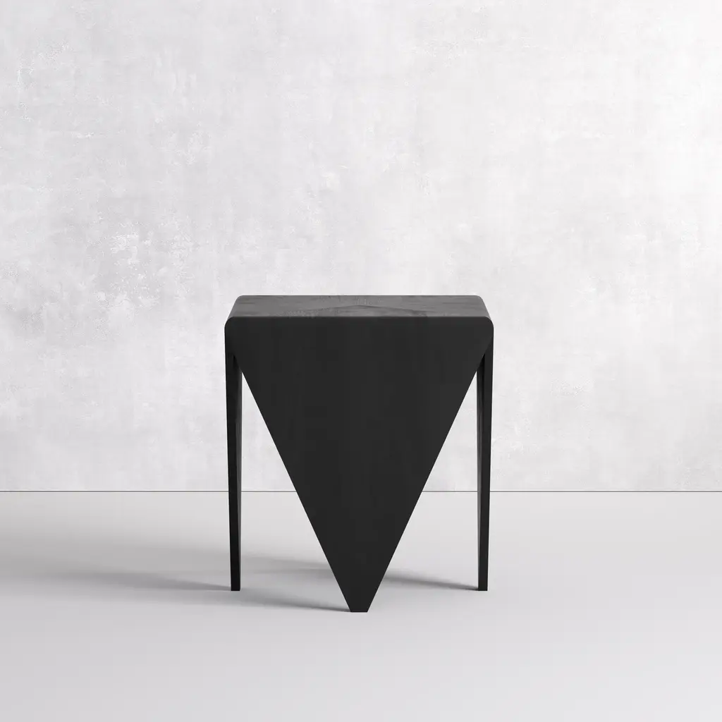 Sharp angles and a triangular structure are the defining elements of our Edelgard side table. A veneer finish will warm up your interior while maintaining an organic look. Mix both natural and modern details for a well-balanced space. Add our Edelgard side table to your living room, bedroom, or anywhere you need an eye-catching accent piece. Dimensions: 18.0''W x 18.0''D x 20.0''H Tear Sheet