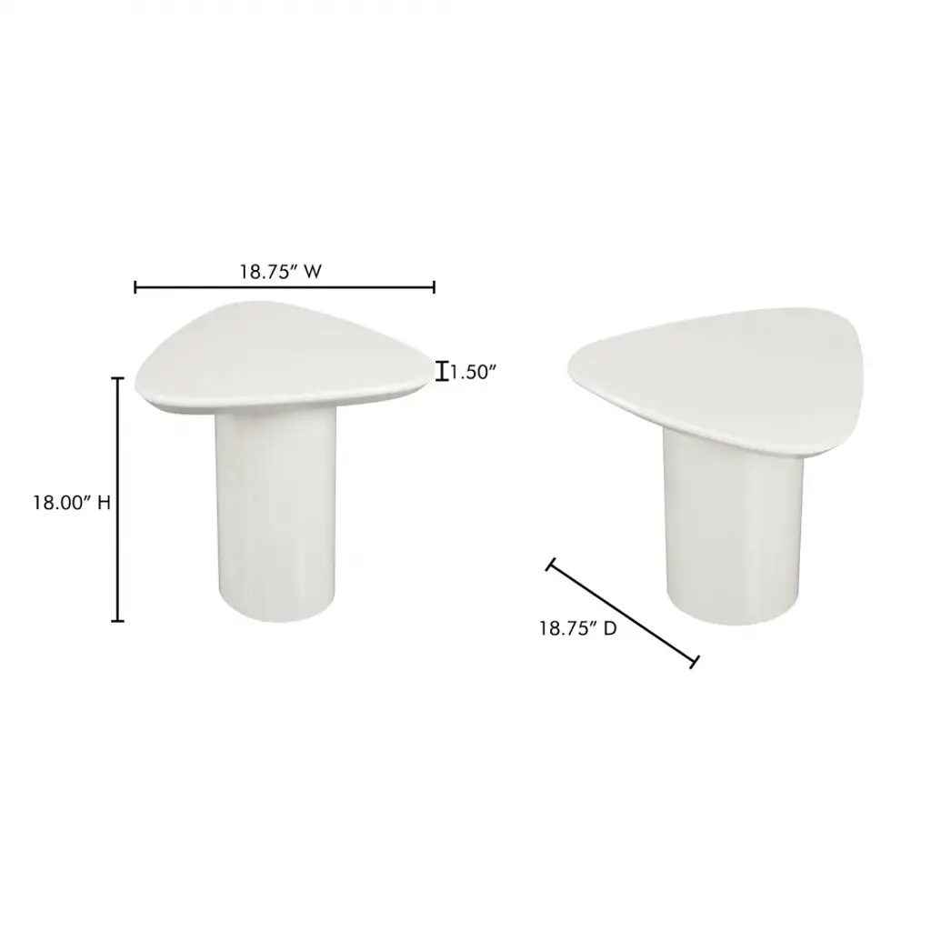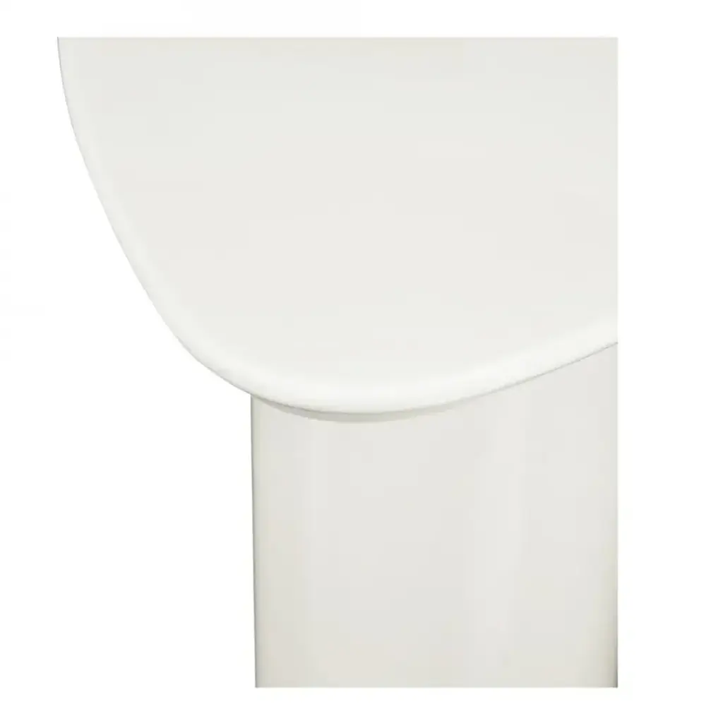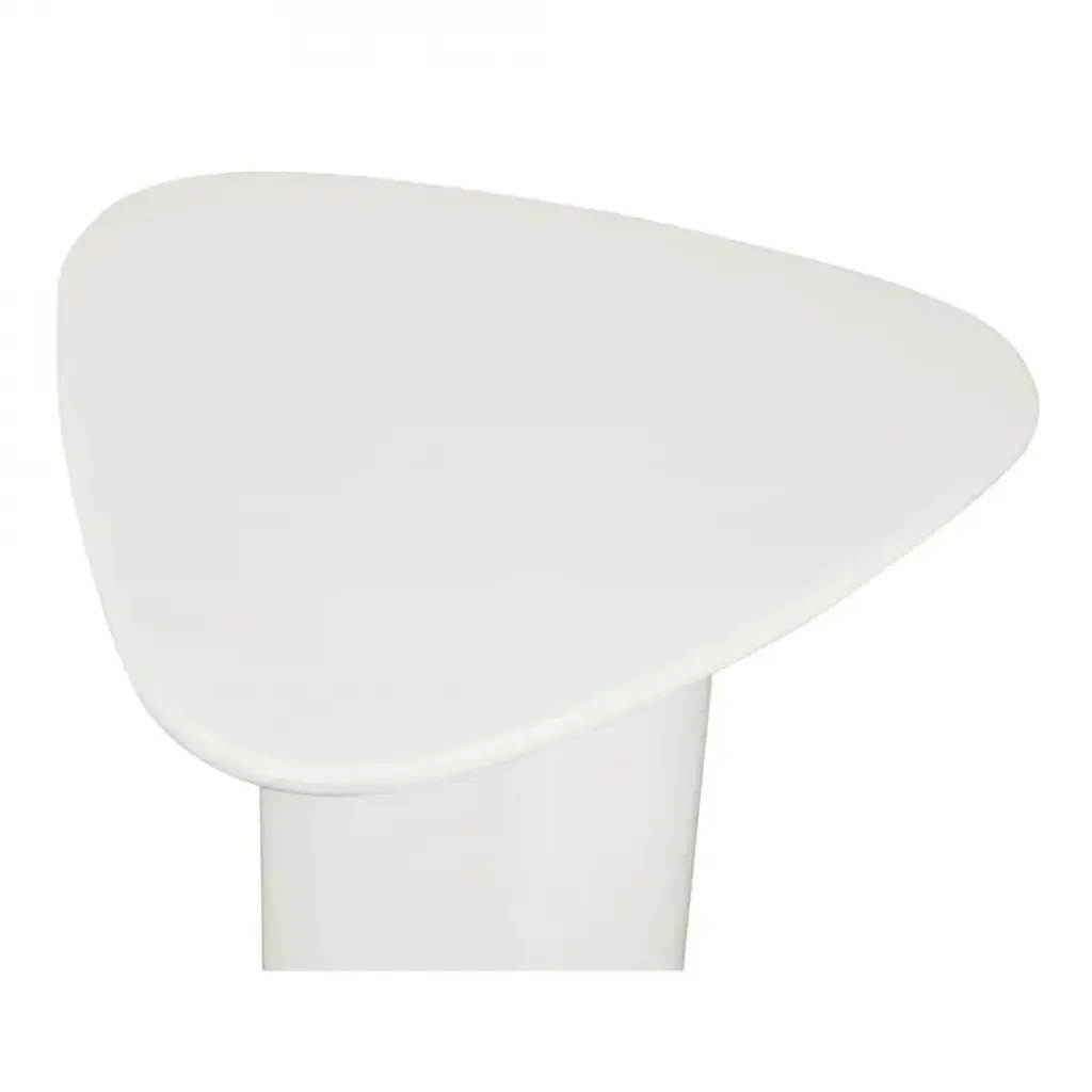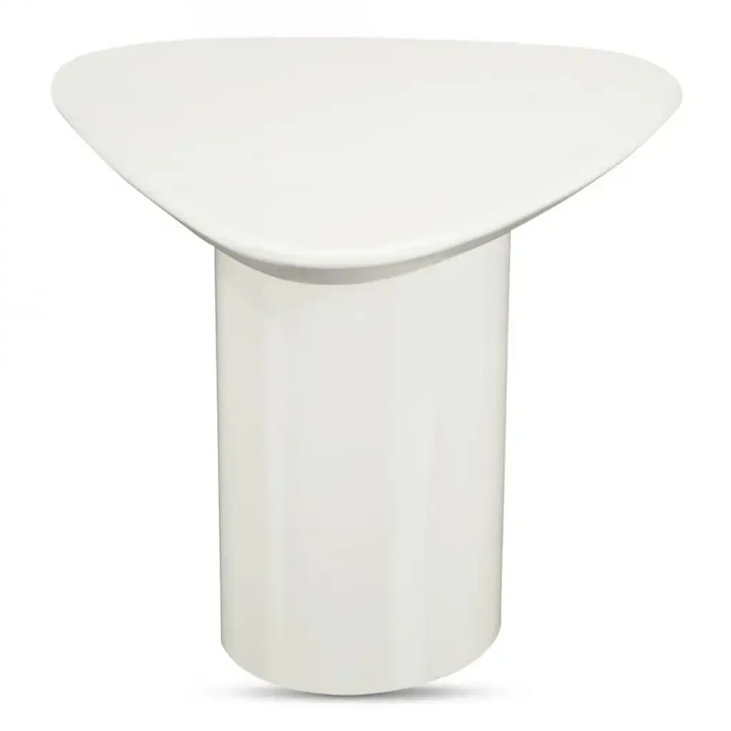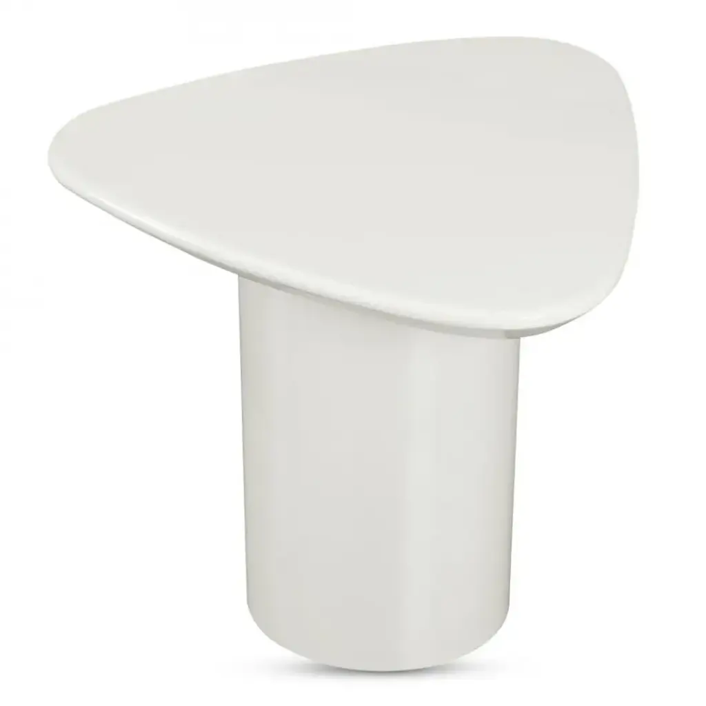 The Eden accent table features a rounded triangular shape and oval pedestal base, creating a sculptural silhouette that exudes modern sophistication. An ivory white and black high gloss finishes this table's surface, reflecting light, brightening and opening up any space.