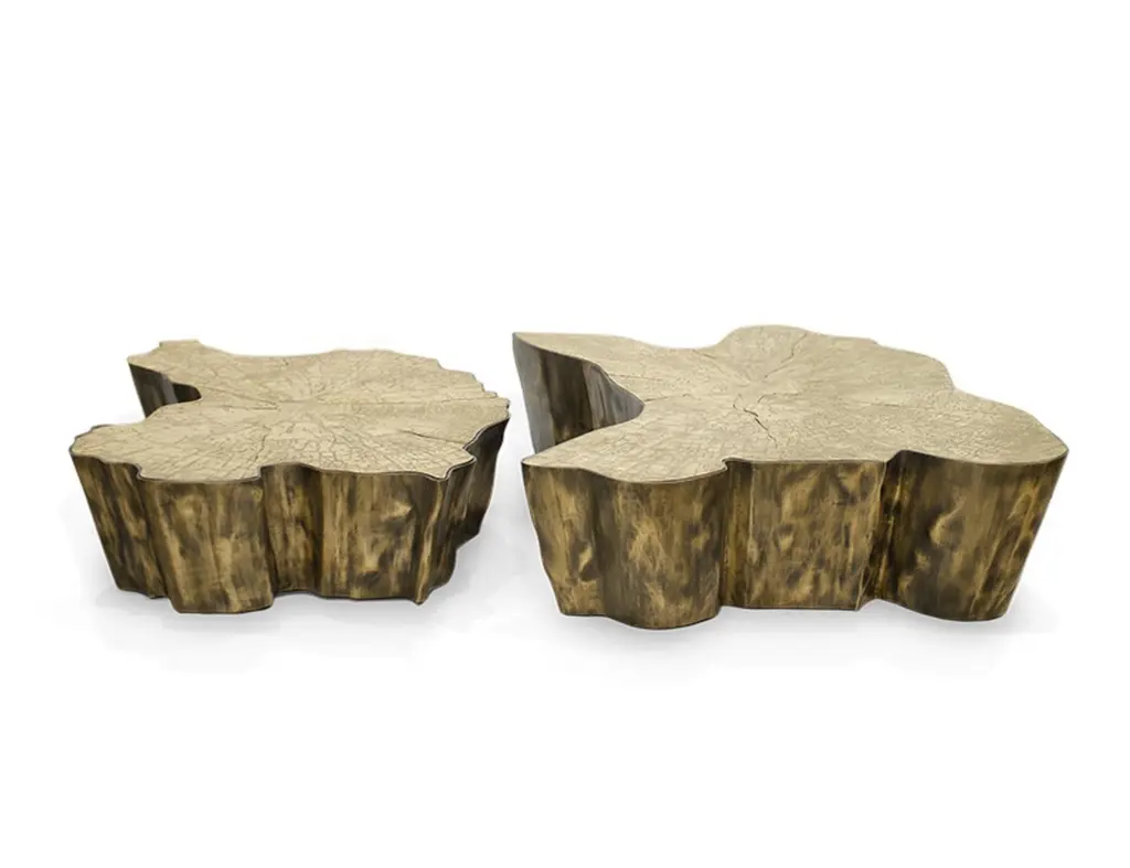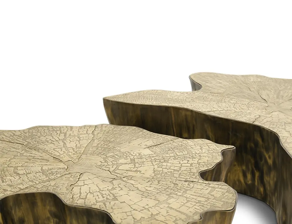The mystic behind the name inspires Eden. This center table represents a part of the tree of knowledge and the tale of the birth of desire. Boca do Lobo uses the highest quality materials and textures, giving them shapes through objects that create a cosmopolitan luxury environment, finding the finest example in this table. Fully made of polished casted brass, with a delicately engraved top exposing the heart of a golden tree to the very heart of a home. Available a set of two center tables and also an elegant and highly decorative side table.