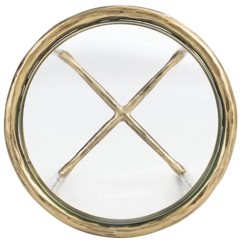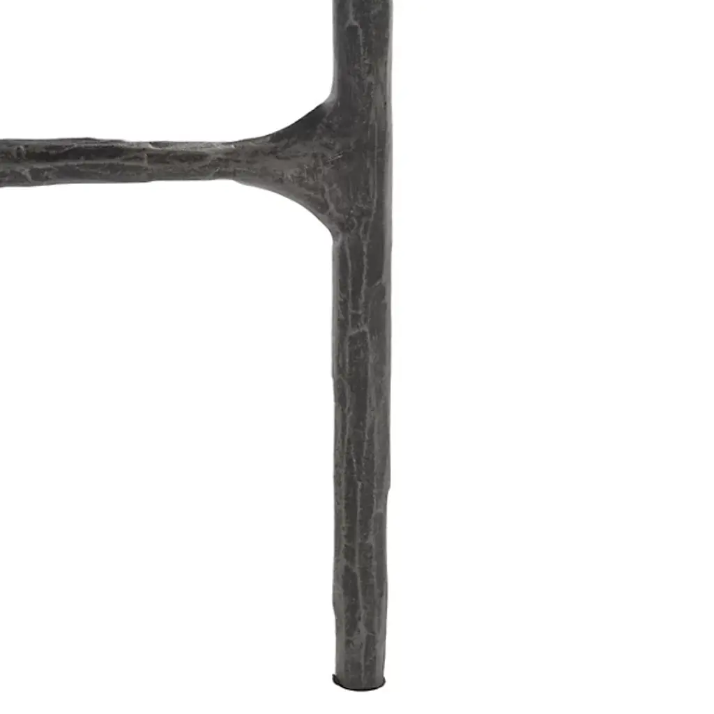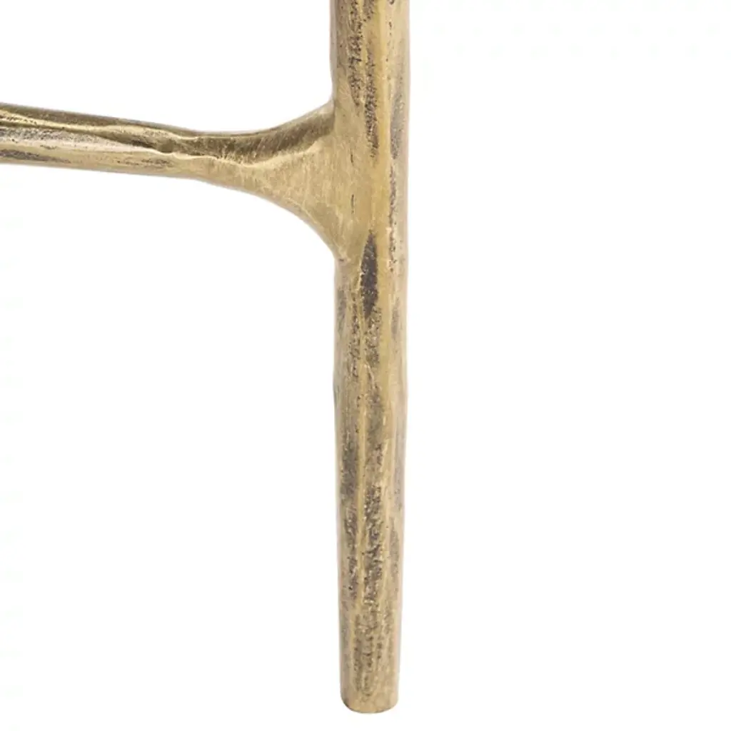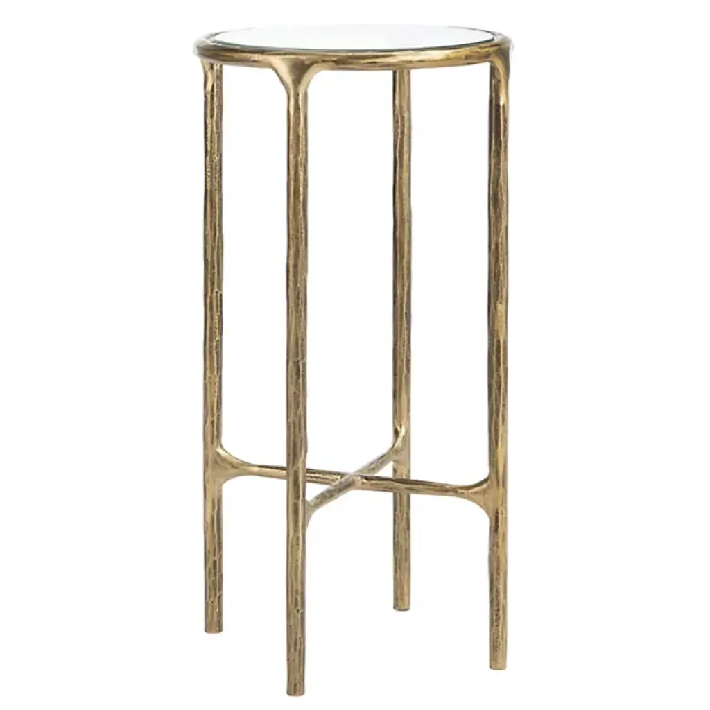 The Eirinn Tall Round End Table is presented by Alder & Ore. This exquisite piece combines an airy and open frame design with a tall stature that adds a commanding presence to your space. A rounded top exudes opulence and refinement, while the crossed stretcher design not only enhances the table's visual appeal but also provides structural stability. With its seamless blend of clean lines and intricate details, the Eirinn Tall Round End Table elevates your space beautifully.