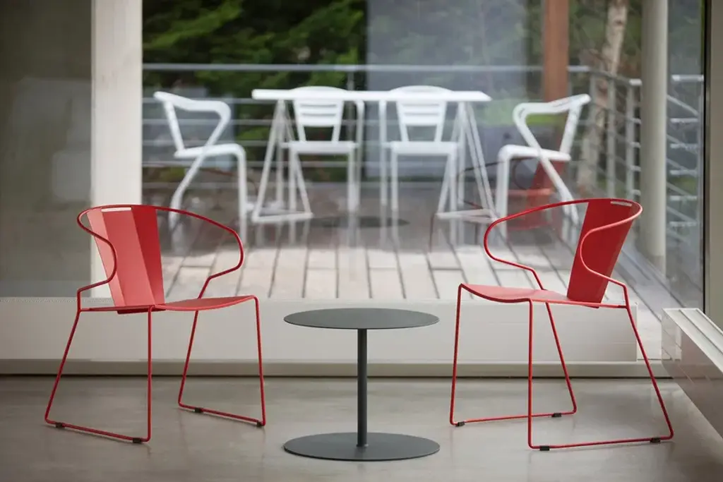 Eivissa is a collection made of galvanized steel, polyester powder coated. Suitable for outdoor, indoor, and contract use.