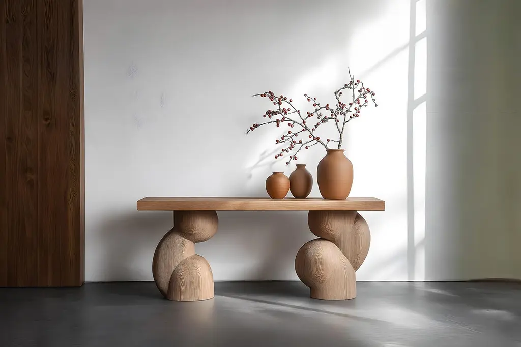 Elefante Console Table 51 By Nono, Solid Wood, Elegant Curves