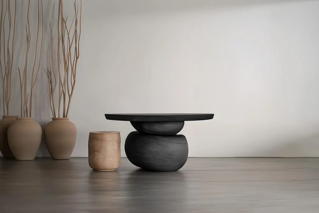 Elefante Side Table 9 By Nono, Solid Walnut Wood, Ornamental Design