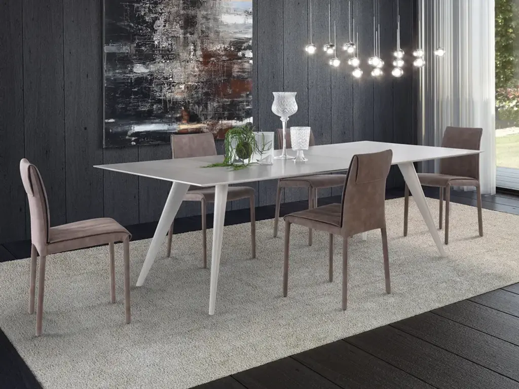 ELEGANCE is a square extendable designer dining table, crafted with high-quality workmanship.Created in 2013, it is the result of a process that blends artisanal skill with the most innovative industrial techniques.The outcome is a precious ash solid wood table with a refined vintage-inspired design, where the details truly make the difference: the top is supported by a structure with conical legs that ensure excellent stability and, above all, strong visual impact.Available in square or round versions, the Elegance table features a practical aluminum mechanism to extend the top, making it highly versatile in size.Extendable square or round designer dining table with solid ash wood legs. Top and external extension leaves in ash veneer. Aluminum opening mechanism.