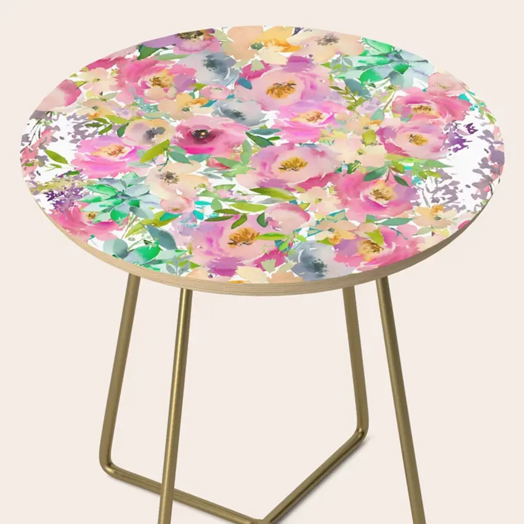 Elegant Blush Pink Lavender Green Watercolor Floral Side Table