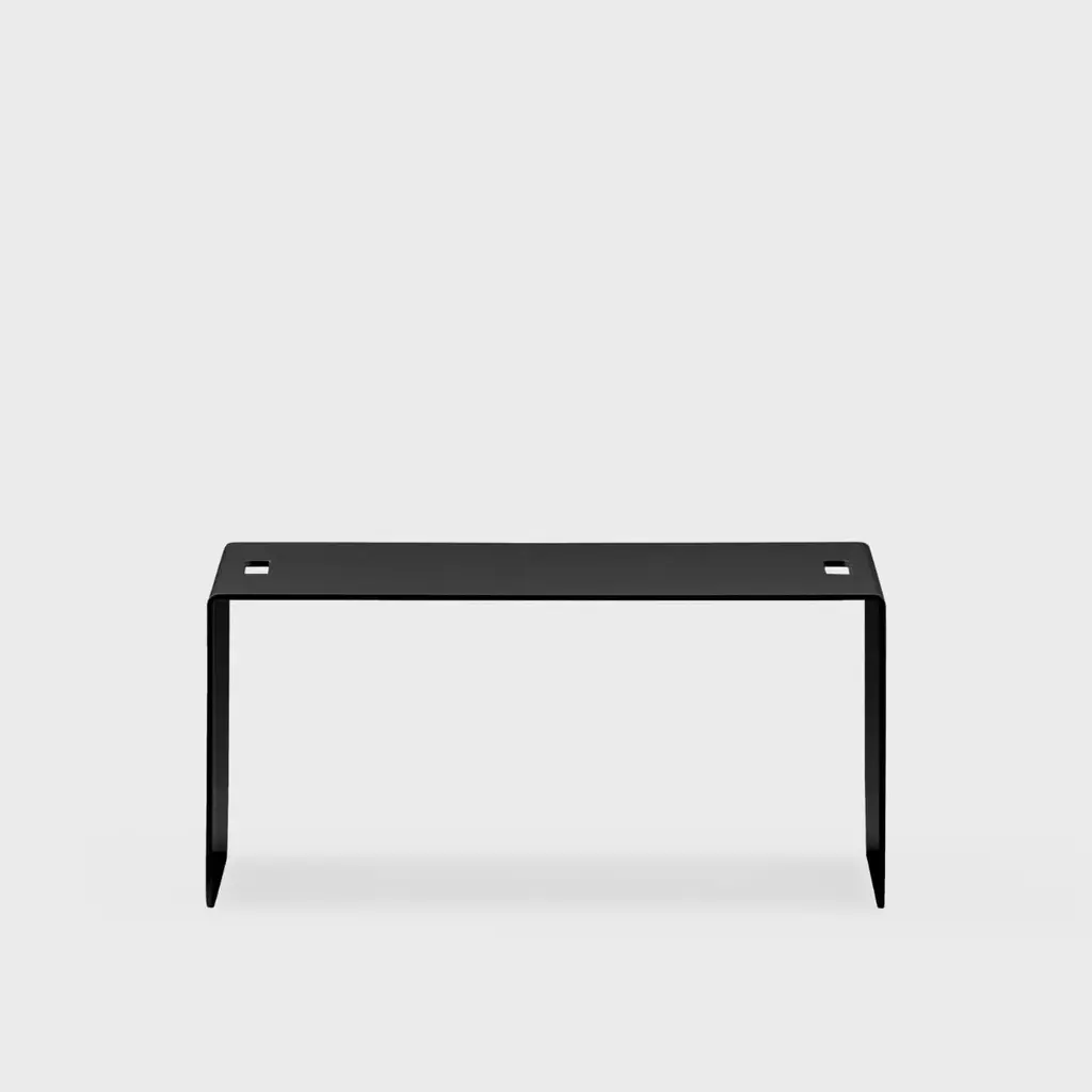 Use this smooth, pure steel table four different ways: as a portable standing desk, an over-the-lap seated work surface, an end table, or a place to prop up your feet. It’s built by makers in a small workshop in West Michigan with steel from the Midwest.
