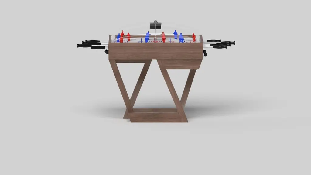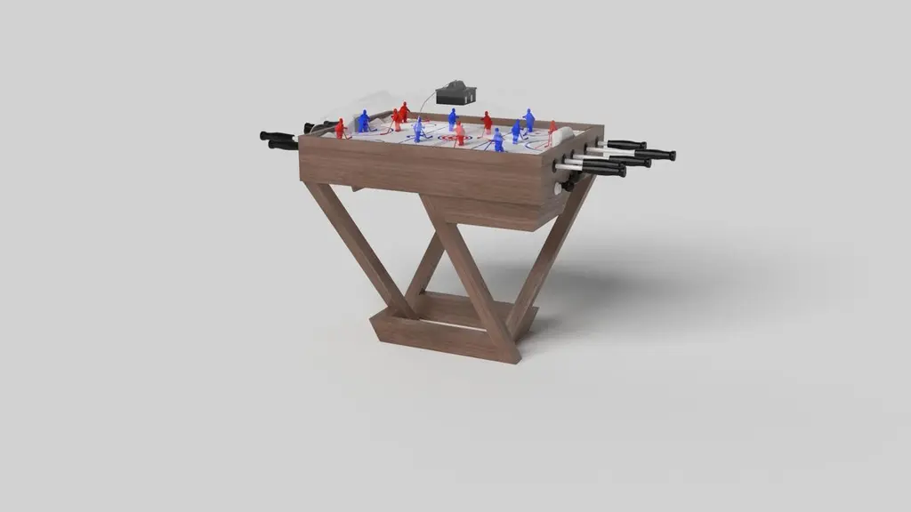 A contemporary composition of clean lines and sleek edges, the Trinity dome hockey table in black chrome with red accents is an elegant expression of modern design. Handcrafted from natural maple wood, this table offers statement-making style with sharp angles that form three distinct triangles when viewed from the side. When viewed from each end, a Z-shaped pattern takes form, giving this high-end table a bold, geometric appeal that fits seamlessly into any modern room design.Size:45”X34”X47”
