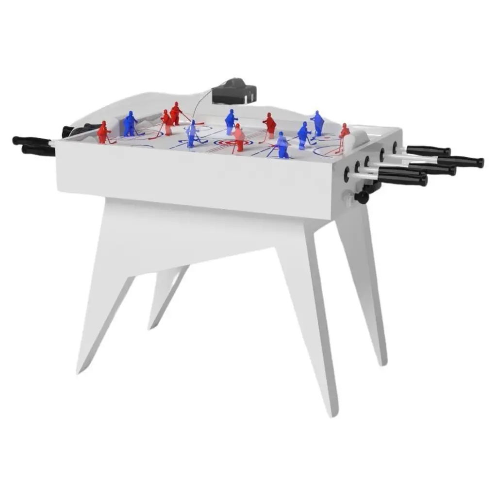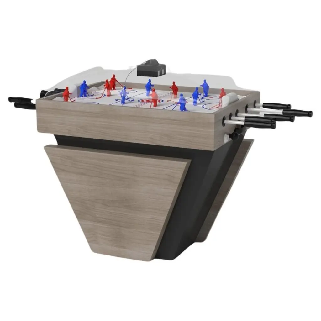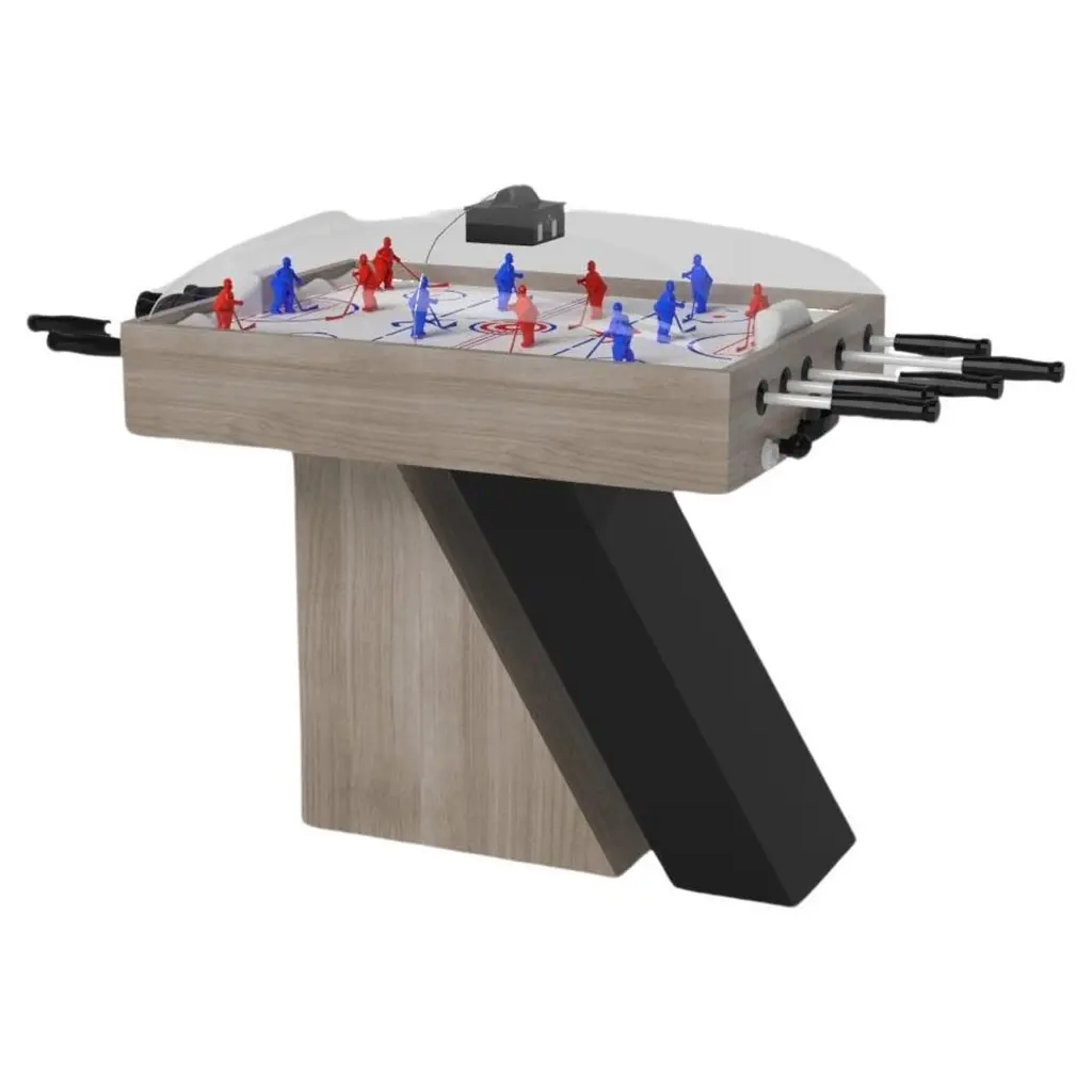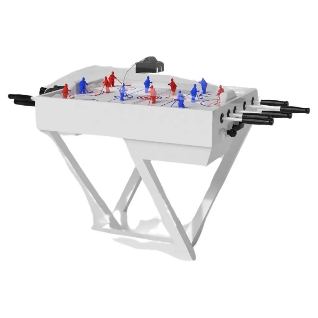 A contemporary composition of clean lines and sleek edges, the Trinity dome hockey table in black chrome with red accents is an elegant expression of modern design. Handcrafted from natural maple wood, this table offers statement-making style with sharp angles that form three distinct triangles when viewed from the side. When viewed from each end, a Z-shaped pattern takes form, giving this high-end table a bold, geometric appeal that fits seamlessly into any modern room design.Size:45”X34”X47”