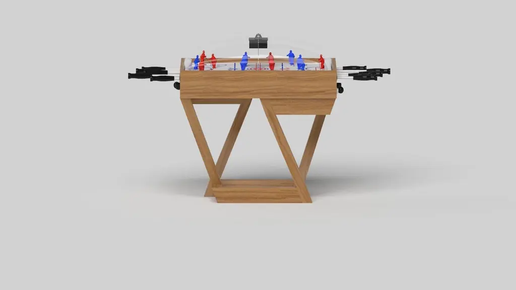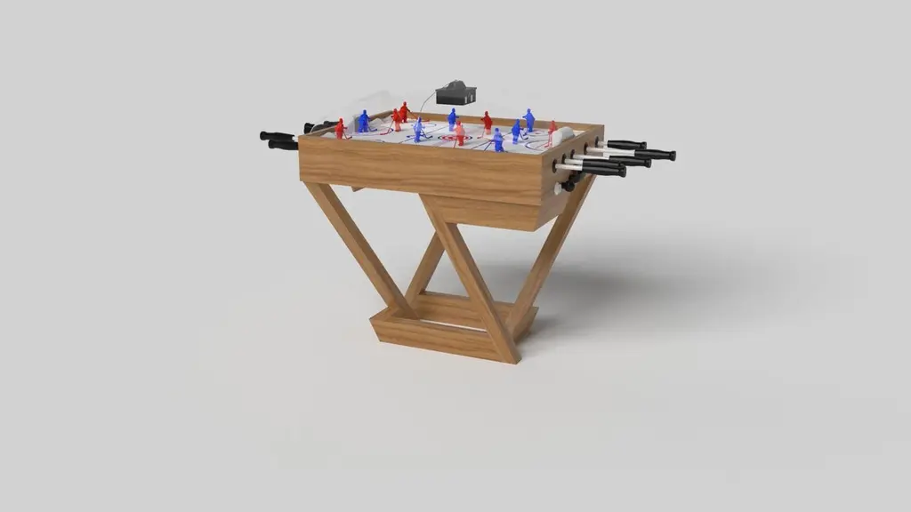 A contemporary composition of clean lines and sleek edges, the Trinity dome hockey table in black chrome with red accents is an elegant expression of modern design. Handcrafted from natural maple wood, this table offers statement-making style with sharp angles that form three distinct triangles when viewed from the side. When viewed from each end, a Z-shaped pattern takes form, giving this high-end table a bold, geometric appeal that fits seamlessly into any modern room design.Size:45”X34”X47”
