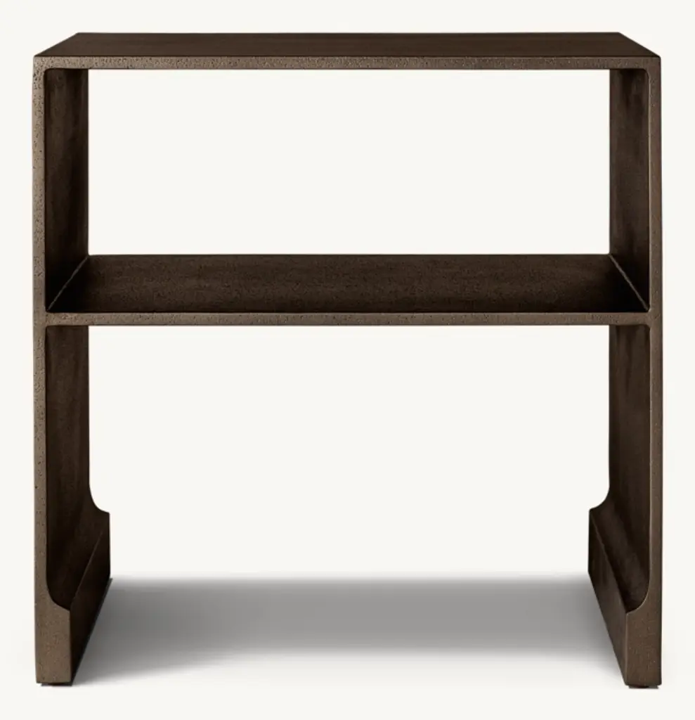 Designed by Alex Bernhardt, Jr., our Elias collection strikes a sculptural pose in cast aluminum. The minimalist silhouette is marked by its modern take on the Ming Dynasty leg and rich variations in tone and texture that impart an aged, organic appearance.