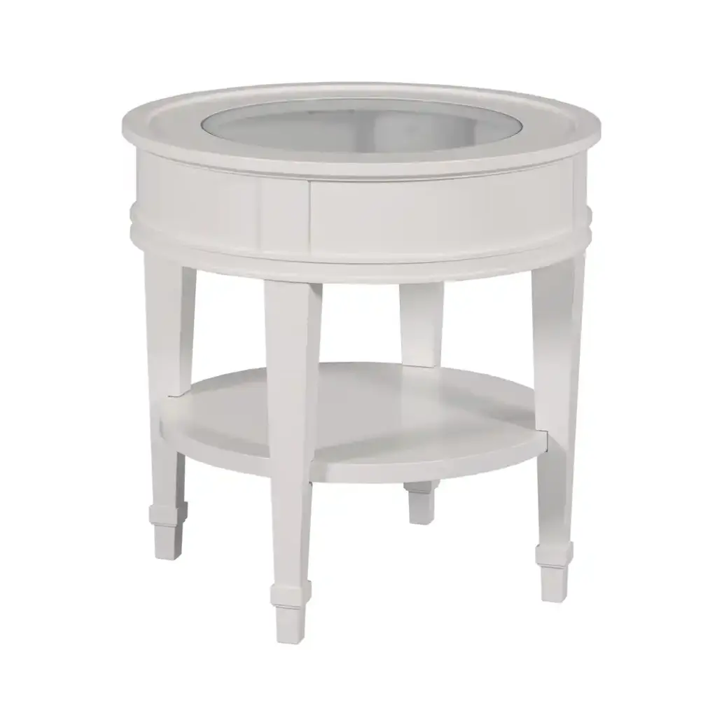 The Oval End Table from the Elise Collection epitomizes timeless elegance and functionality. Crafted with solid wood construction of Alder and select hardwoods, it ensures durability and lasting beauty. Its glass top adds a touch of sophistication while providing a clear view of the exquisite craftsmanship below. With a lower shelf offering ample storage space, this end table seamlessly combines practicality with refined aesthetics, making it a perfect addition to any living space