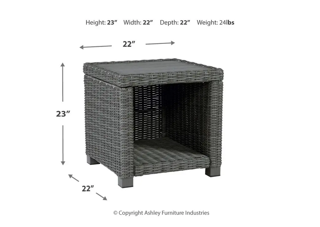 Add a distinguished touch of gray to your outdoor living space with the Elite Park end table. This head-turning table is made with resin wicker over an aluminum frame for a relaxed look that provides seasons of enjoyment. Its aluminum top combines the exceptional durability and weather resistance you need with the "wood look" finish you love. Weight 32.000 lbs. (14.4kgs.)