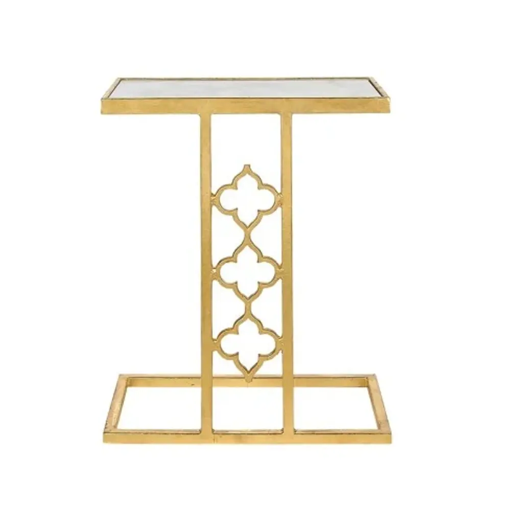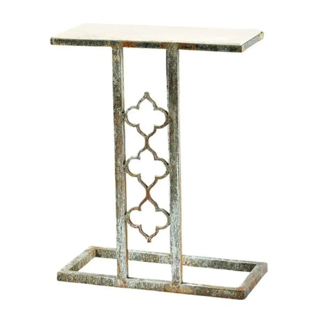 Make your decor pop with this sleek wrought iron end table. Elegant quatrefoil embellishments give it a classy appeal that dresses up a living room in style. The smooth rectangular tabletop is crafted of real marble for a magnificent touch of luxury.