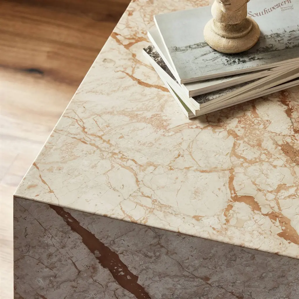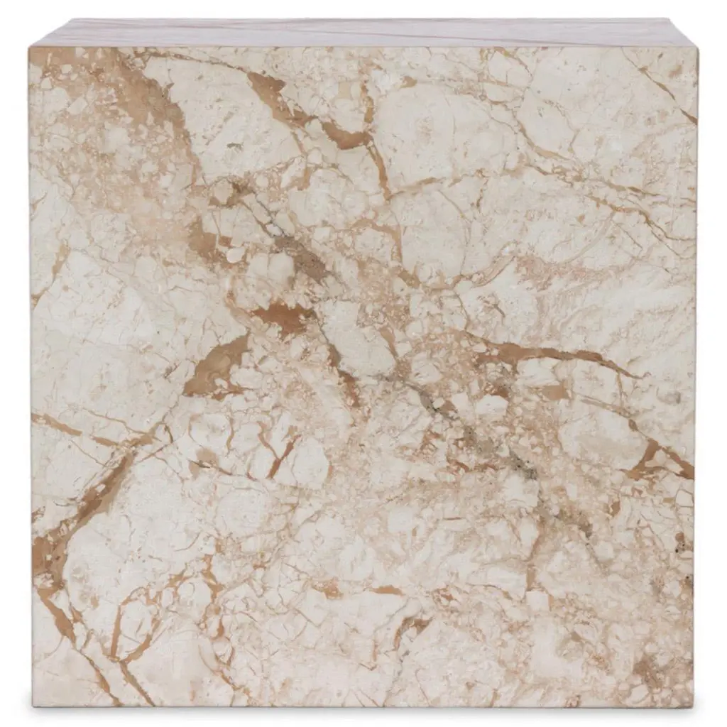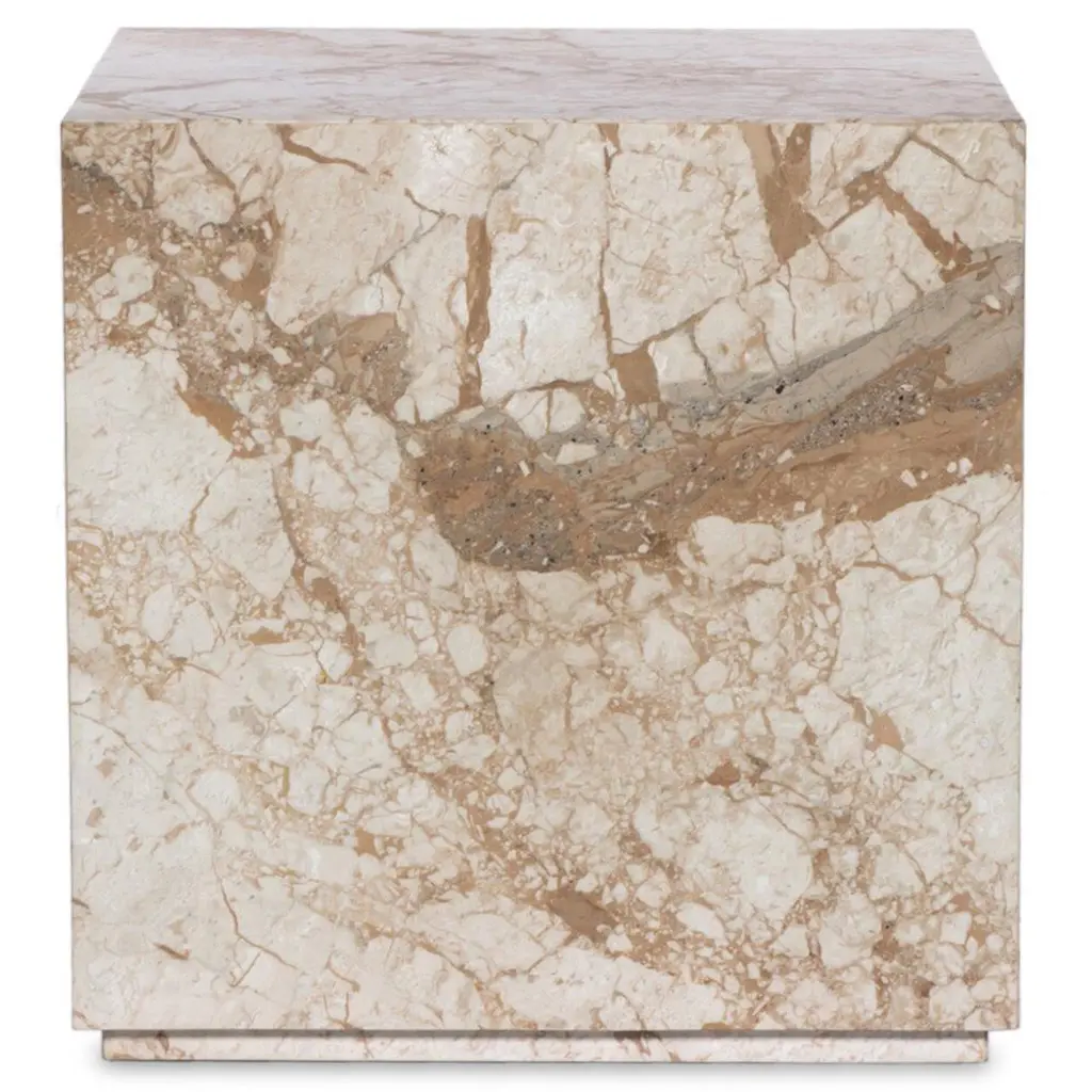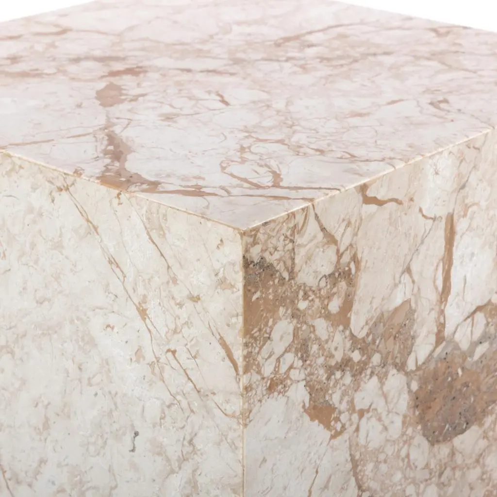 Ellie Modern Classic Desert Taupe Marble Square Block End Table