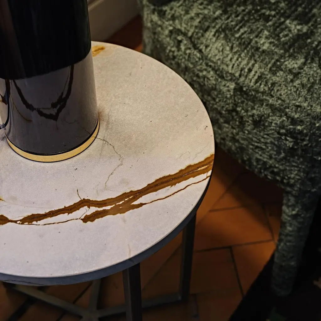 Impeccable proportions serving a design of unmistakable contemporary flair mark this exclusive side table from the Elliot Collection. Here offered in Blue Roma quartzite - fascinating with its golden veins against a blueish backdrop - the circular top rests on a matte dark-bronze metal base that is at once airy and sculptural with its angular legs converging into a five-spoke base. Multiple marble variants and finishing options are available. Please contact the Concierge for details.