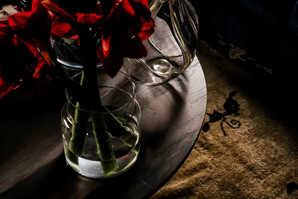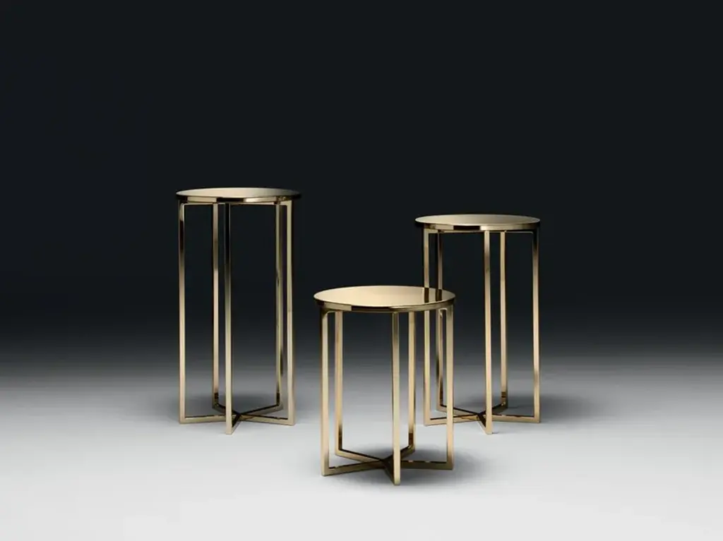 Elliot is a stone and metal high coffee table. Round tables with structure in metal, matt dark bronze finishing. Top in Elegant Brown stone, in matt Calacatta Vagli Oro marble, or in matt Port laurent marble. Matt dark bronze or polished gold finishing top only for the small version.The metal structure of the elegant Elliot tables is sinuous and graceful around the Elegant Brown stone top, in the matt Calacatta Vagli oro marble top, or in matt Port Laurent marble top, together with bronze matt dark finishing. A harmony of forms which gives both practicality and sophistication, leaving room for multiple possibilities of use and location.